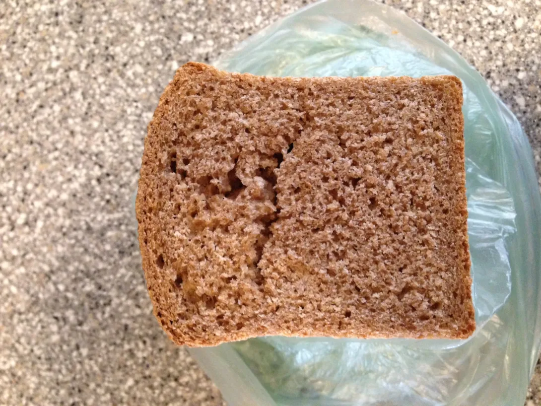 Wow, what a difference. The timings were all longer, the Graham loaf didn't rise nearly as high, the texture of the baked loaf was coarser, and the loaf had a horizontal separation through the middle (see photo at top).