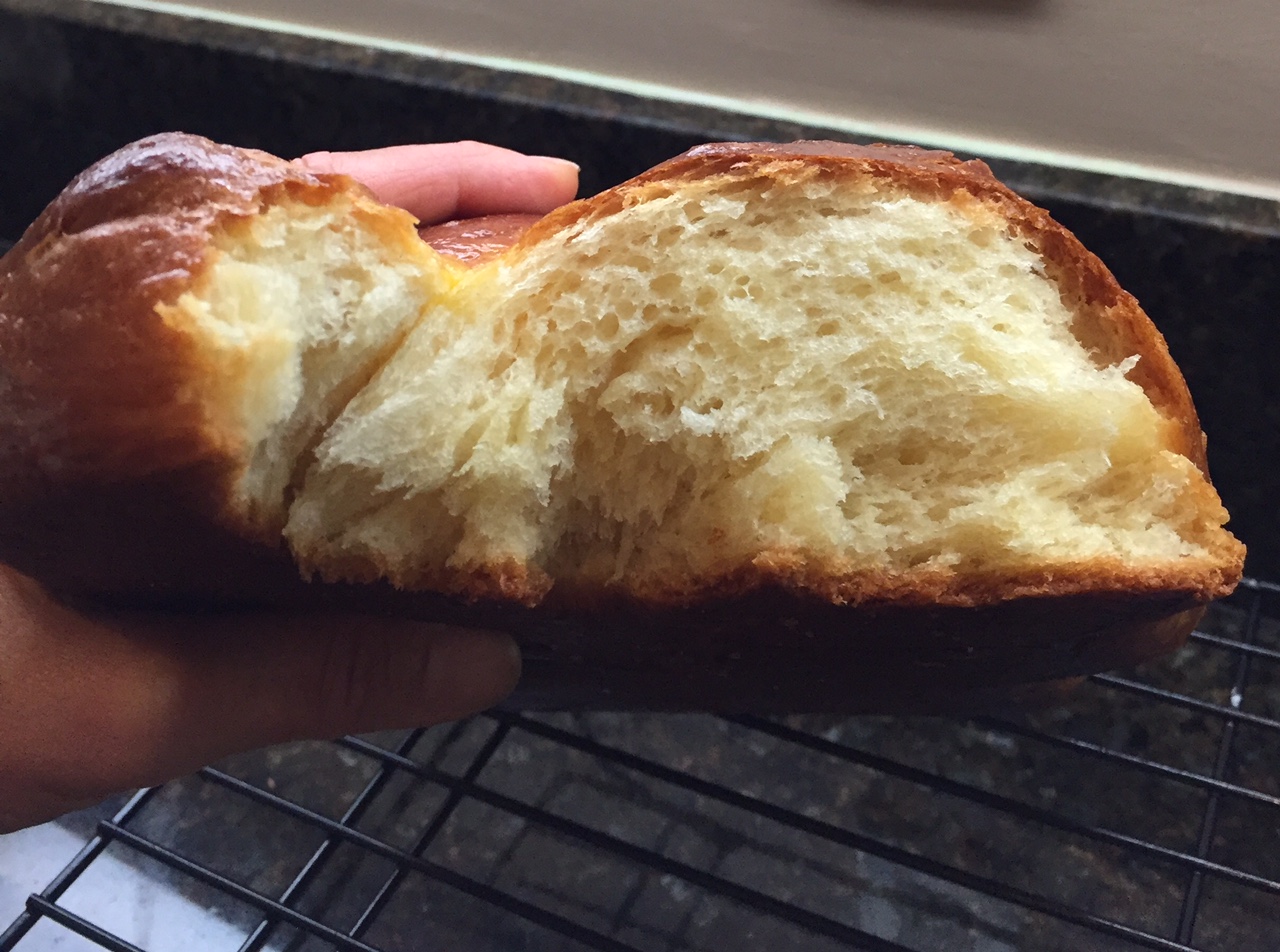 Now, I decided to try the rich dough breads. Here is the heavenly brioche! The recipe is inspired by the one from kitchn.com. This is a yeasted dough. Here is the thing, I basically kneaded it by hand. I was worried about the result, it's my first time! The result is - my family cant stop eating it! Its delicate, pillowy crumb is amazing! The texture and taste are fantastic! I want to get the classical brioche mold for my next baking.