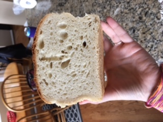 See how there's areas of denser crumb mixed in with large irregular holes?