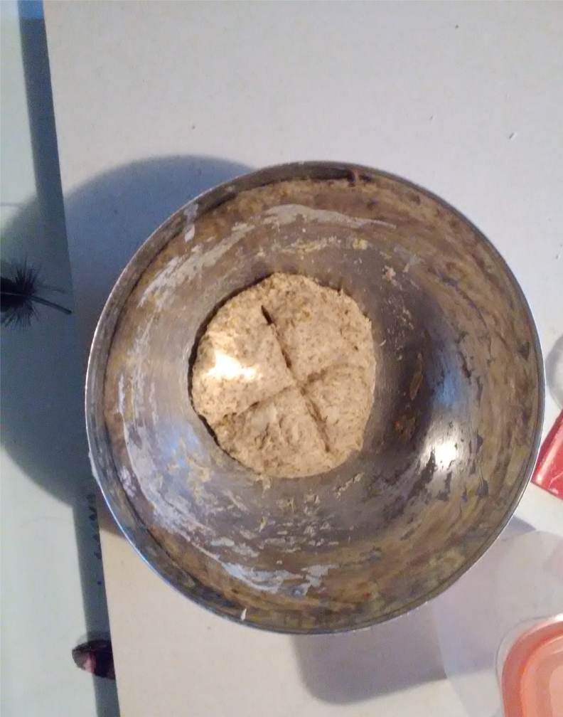 Mix the bran with the wine until a mixture is not too hard, wait 3 days. Dry in oven at 60 ° C for 6 hours, Combine bran flour and water together in these proportions: