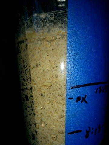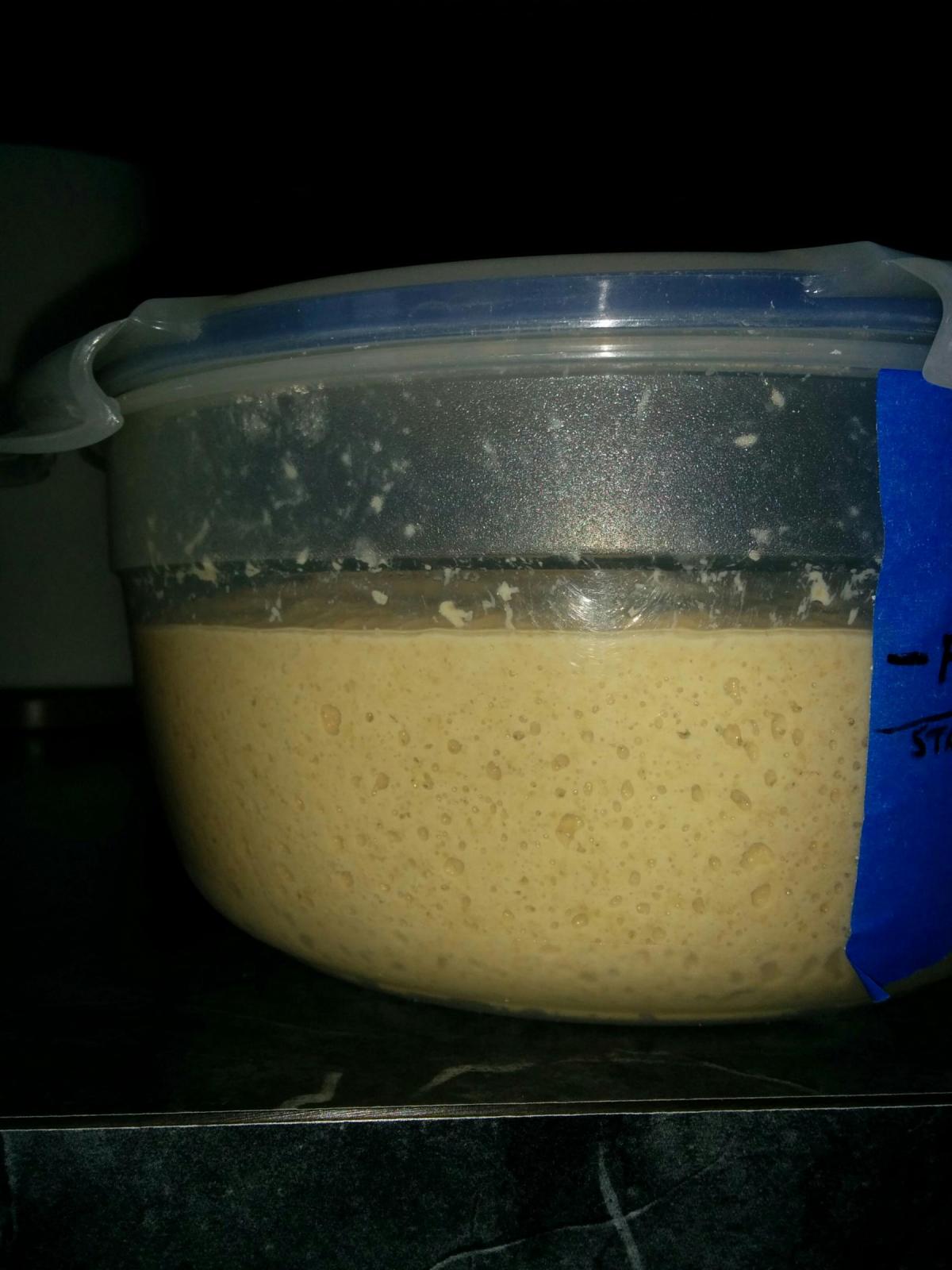 I also use a see-through container for bulk ferment, so that I can see what is going on "beneath the surface".  This was a mix I did a while back, with the bottom line being where the dough started, and the top was where it was at when I put it in to the refrigerator to finish bulking overnight.  You can see how active the dough was by all of the bubbles on the side, as well as the growth: