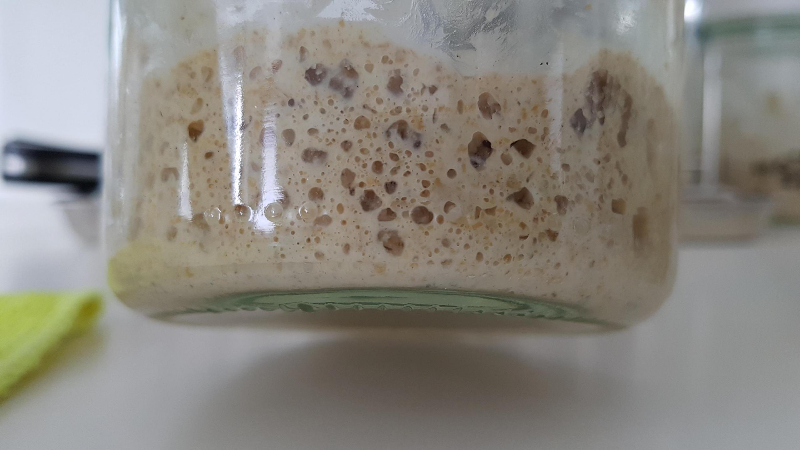 Leaven was left to rise overnight for 9 hrs half after feeding, passed float test.
