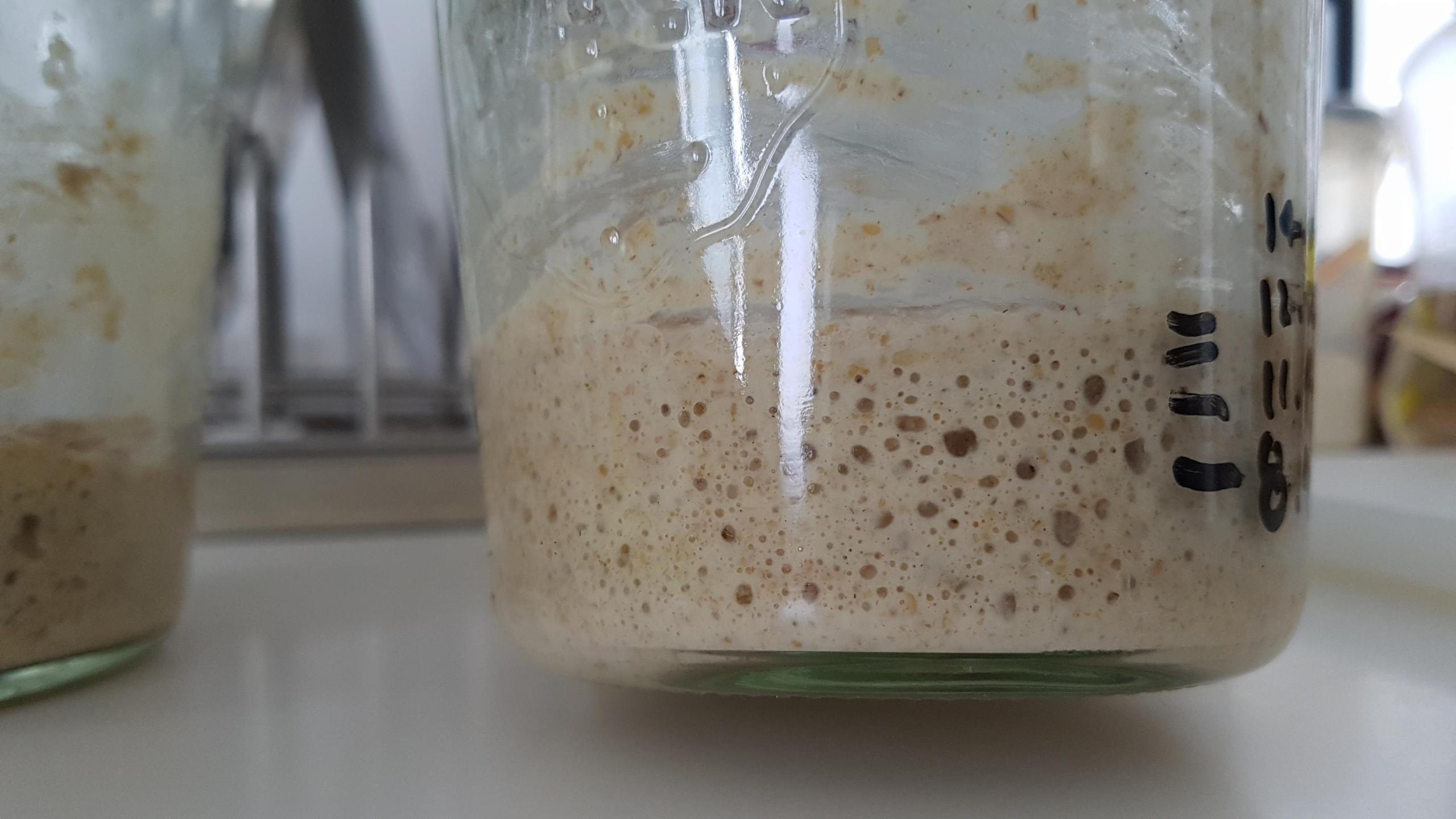 But the first ratio seems pretty dry. It looks like the starter when I experimented with all rye flour but it eventually I threw it out as there wasn't any activity and seem to be moulding. Crossing my fingers that this one will strengthen.