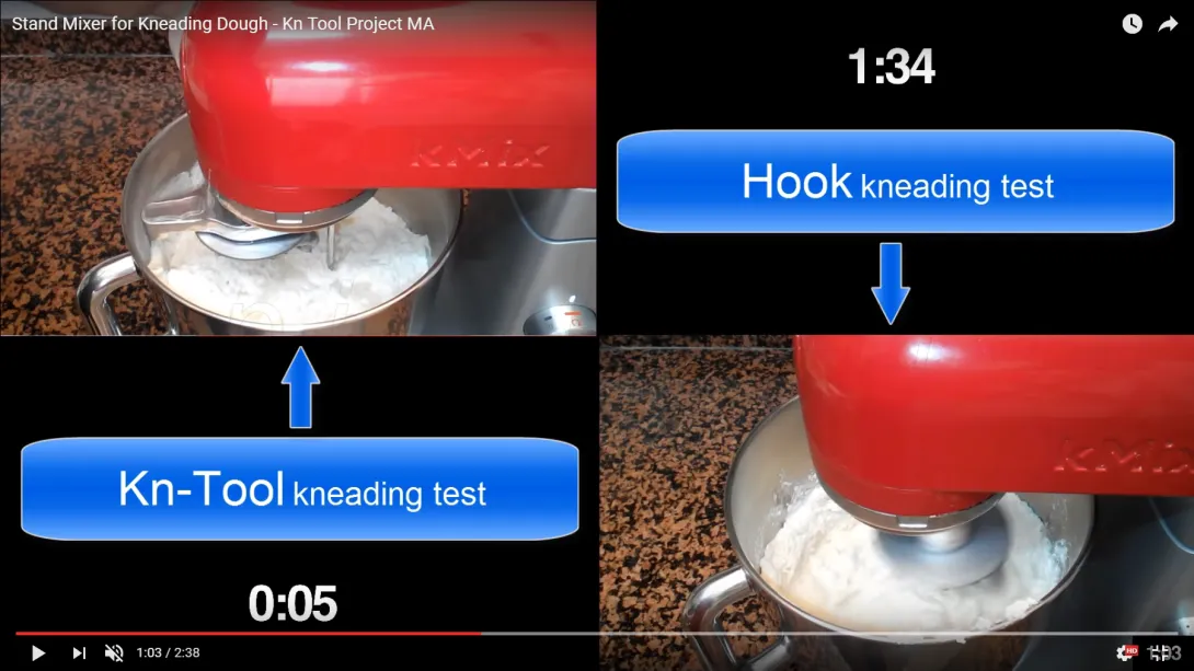 Hi to all the people who are passionate about the art of bakery!, we are a group of people enthusiastic of homemade bread, who after having suffered the problems involved in kneading bread dough with a stand mixer: The dough be stuck to the walls of bowl or wrapped it cyclically to the kneading hook, which makes it difficult to knead, up to the point that overheat and spoil the dough, until the moment that we had an idea, that we now share with you. We are currently looking for partners to carry out this great project, so we can give a solution to the thousands of users who suffer this problem daily. Please, if you like this project help us to spreading our YouTube video (https://www.youtube.com/watch?v=Q4EVAv2ntlk) sharing it through the social networks, forums, blogs, etc. in which show a test is made by kneading only with the kneading hook provided by the manufacturer, comparing to the kneading hook assembled to the accessory developed by us (Kn-Tool). And please, don't forget to click on "I like this video". Thank you very much to all the people in advance! Enjoy of the pleasant elaboration of homemade bread! Kind regards, Toni Tapia
