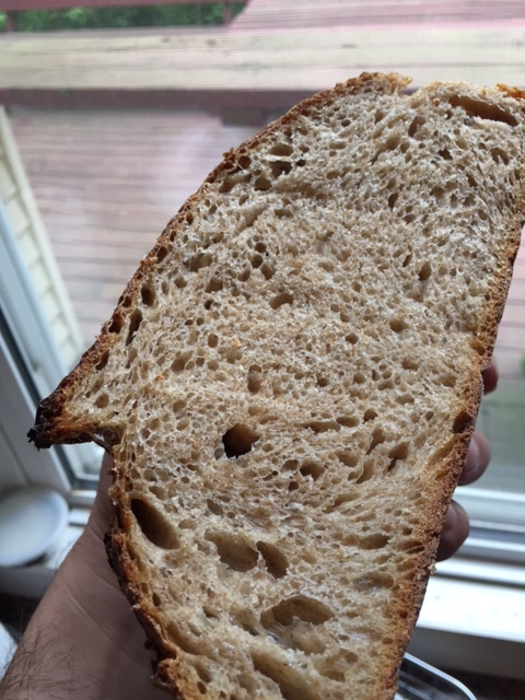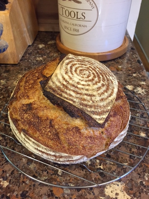What made this most interesting to me is that for me, it is on the low side of the hydration scale. It made the dough super easy to score and made me feel like I could actually do some kind of design. Usually the dough does not cut this easily for me and I attribute that to the wetter dough.