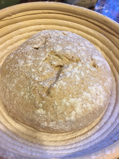 I was very pleased with the loaf and with my patience.When the dough did not rise in the fridge upon waking up, I boiled a small pot of water, put it in the microwave and put my cold dough in the warm microwave and just waited until it moved up a few notches in the basket.