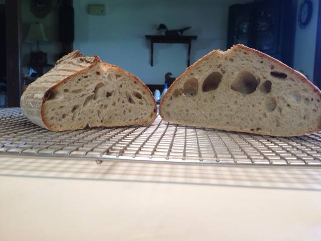 I made the final build for the levain as Hamelman describes and let it sit out overnight (12 hours). Mixed the dough and bulk fermented for 2 1/2 then final fermentation for 16 hours in refrigerator. Note; the dough looked strong and hadn't deflated.
