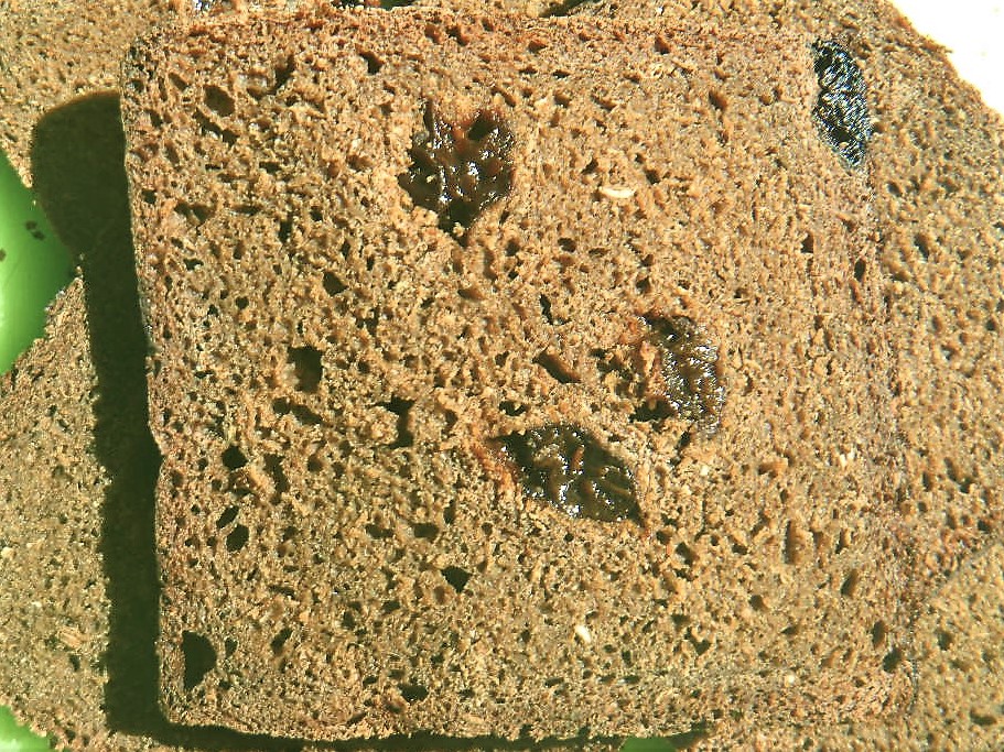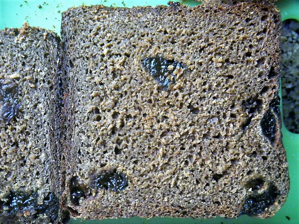 The bread sliced very thinly and easily making for perfect less than 1/4" slices. The bread spices are more subtle than usual too..... 6% would have been better. We still like this bread very much even if not as open as others but it is 100% whole grain bread in the classic 60 / 40 rye wheat split found all over The Netherlands - but the prunes are pure Andy of TFL fame and delicious in this bread. I also like it better with Mini Oven's Toasted Walnuts and Lucy's sprouts as additional add ins. It is still about the best thing since sliced bread none the less.