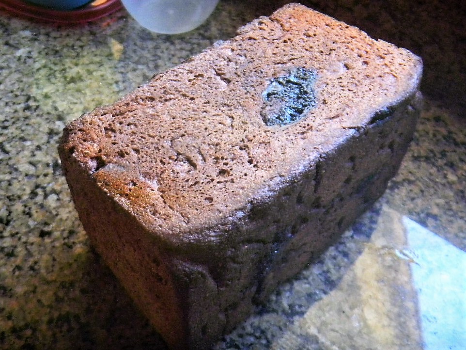 We were going to let the bread continue baking out of the pan at this point but I was already 206 F and a bit more than the 202 F we were shooting for - so onto the cooling rack it went. We will now wait to see if the crumb came out as nice as it did in last March sans nuts and sprouts. The crumb was not as moist as usual due to the over baking by 4 F we were looking for.