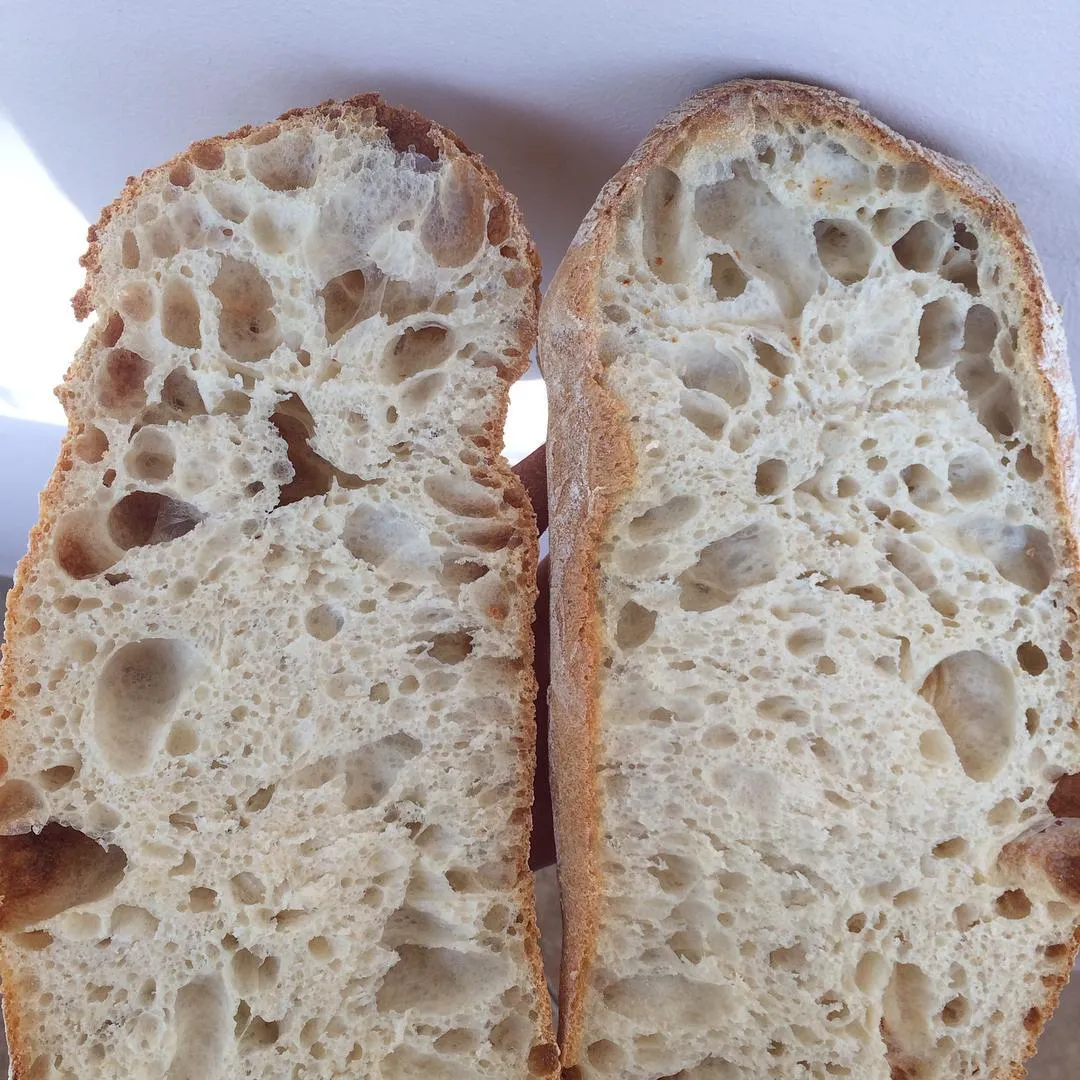 Hello everyone! I have some problems with my ciabatta.That is Suas Poolish Ciabatta from advanced bread and pastry book.I mix 6-8m with slap & fold and 2 folds at 45m during bulk ferment, bulk was ok, fina proof also dough was very gasy after 30m at 27C, but when I flipped it maybe degass it too much I dont know, tried to be gentle as possible.I bake on preheated baking sheet and maybe dont have enough bottom heat to that final bloom to get nice crumb structure.My ciabatta never have enough volume.Tried to increase mixing time tried also no knead method only by S&F and result everytime is thigh crumb.