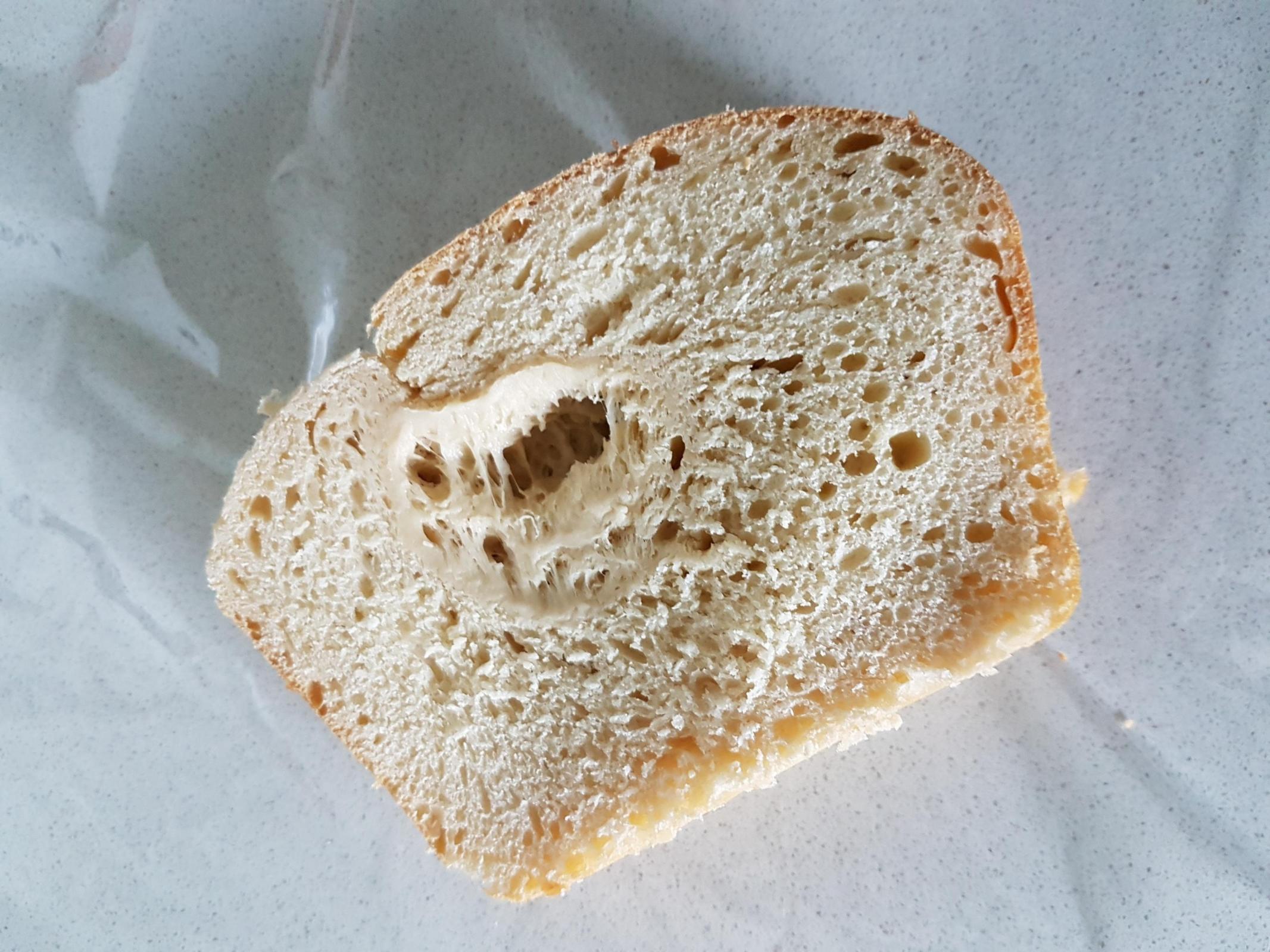 My dough seems to be quite sticky and bit slack even after increasing kneading time from 30mins to 1hr. I keep ending up with a big crack along one side of the bread crust and inside it's gummy with a big cavern close to the crack.