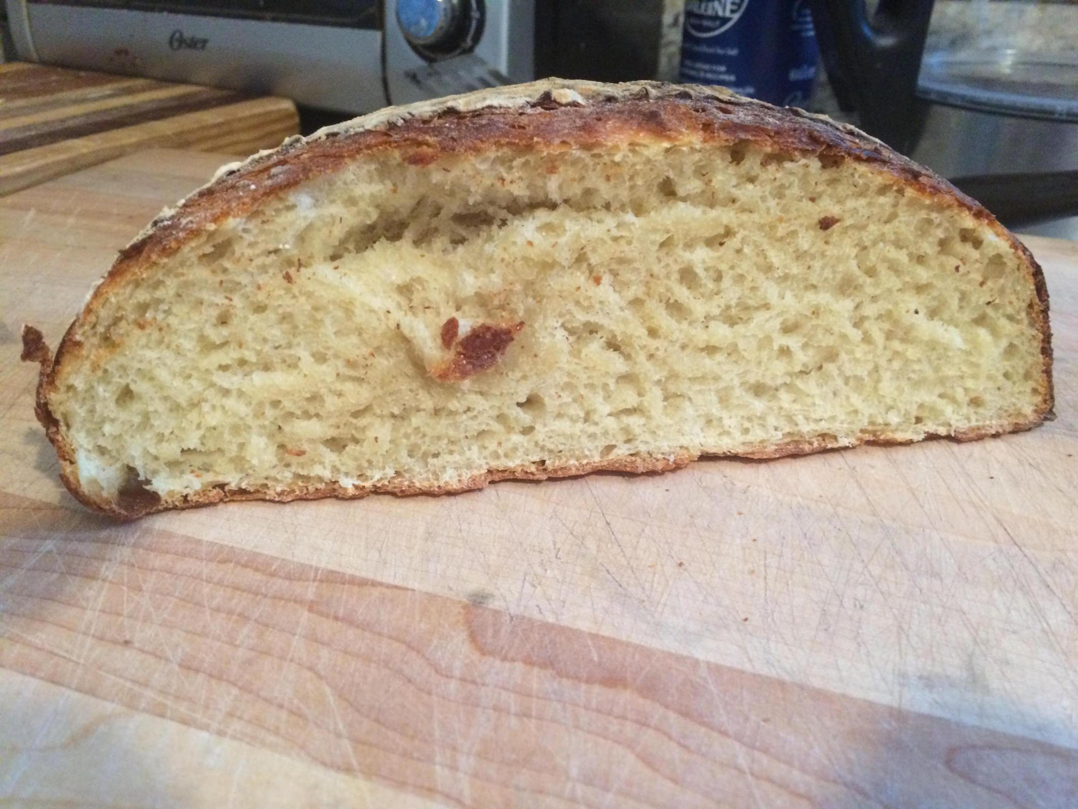 Did a bake today, two loaves' worth. Both came out tasting quite good, and the rise was among the best I've had yet. But the crumb was quite dense, enough so that it almost felt undercooked to eat (with a little butter on it, the taste was excellent).