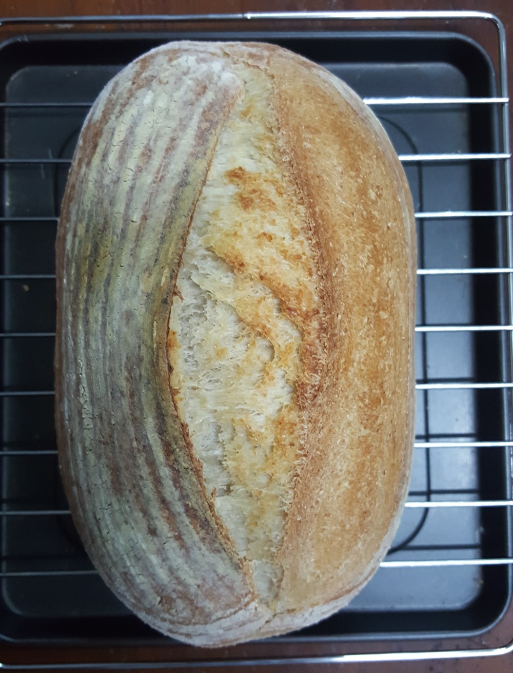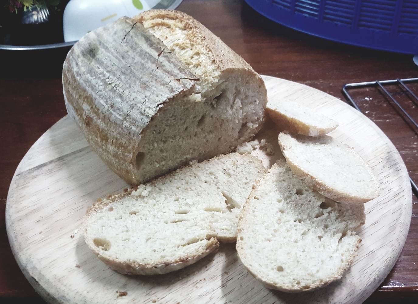 The taste is quite good with just enough sourness, at least for my taste buds. My mother seems to quite like it toasted with butter. I should try high hydration for future loafs.