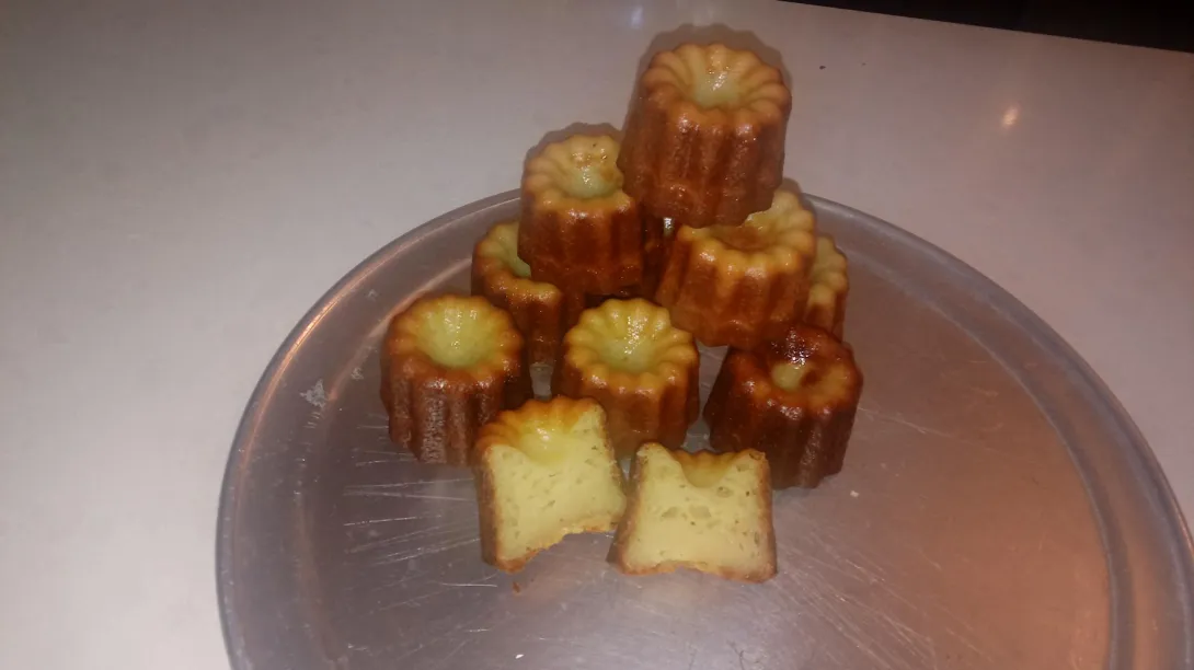 A quick batch of canele this time with beeswax for mold coating. This was an experiment to see how the tradition method holds up to contemporary. Since I already had some feedbaxk that coating with a 50/50 mix of wax and butter was a tad too waxy I opted to try this for the first time with a 25% beeswax and butter mix. 3 of these were made with straight butter the remainder with the wax mix. The results - the wax versions have a sight honey odor that doesn't come through in the taste but what is really interesting and enjoyable is the crust - the ones made with the wax mix have a shinier coating that has more of of toffee consistency that tends to stick to your teeth slightly and overall very pleasant - I would say that I prefer the traditional mix. As a side note, the molds were slightly heated before coating and then brushed with a very thin layer of the wax mix, then let chill in the freezer for a few minutes followed by filling with cold batter. Again they popped up in the oven and required a mid bake shove down and hence the challenges crushing the tops but otherwise delicious :)