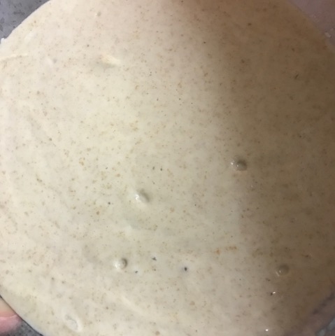 you can see it looks like paste. If I touch it with my fingers, the dough will easily stick on my fingers. In the book Tartine, Chad uses hand to mix the ingredients but I used mixer. At first, I mixed 2-3min low speed. Then I add the remaining water and salt, mix for another 2-3min in low speed.