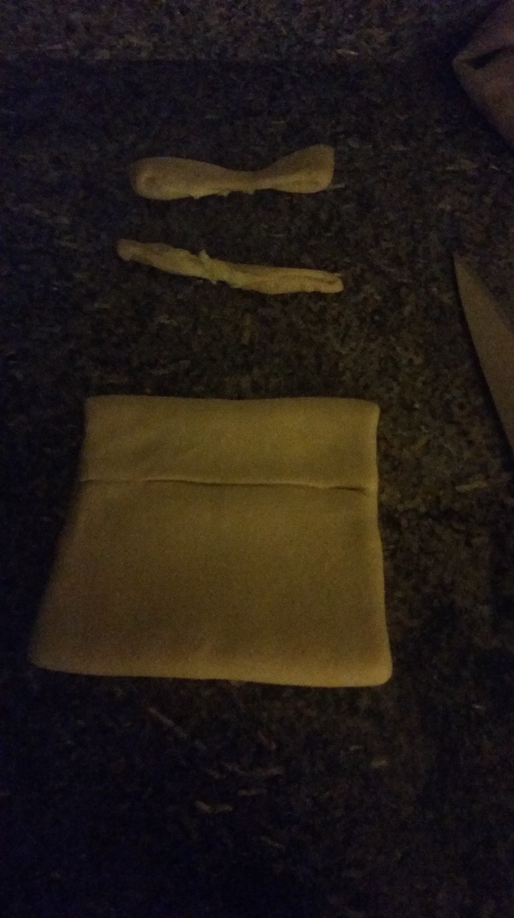 At this point, the croissant dough and butter package will be about the size of the butter packet before sealing, with a horizontal dough seam running from side to side. Attempt to even the corners of the dough, but it is perfectly fine if there is a sort of V-shape at each side, with the butter peeking through.