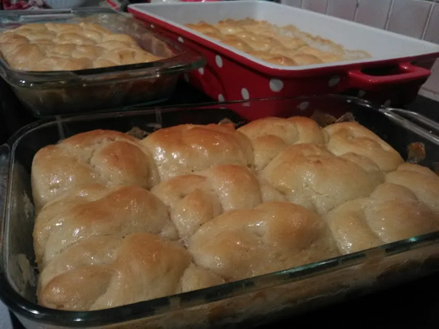 The buns are actually cooked in the sauce, and they expand quite a lot while cooking so it pays not to pack them in too tightly or they'll push all the sauce out. (I ended up cooking some more sauce on the stove afterwards to compensate for the loss)