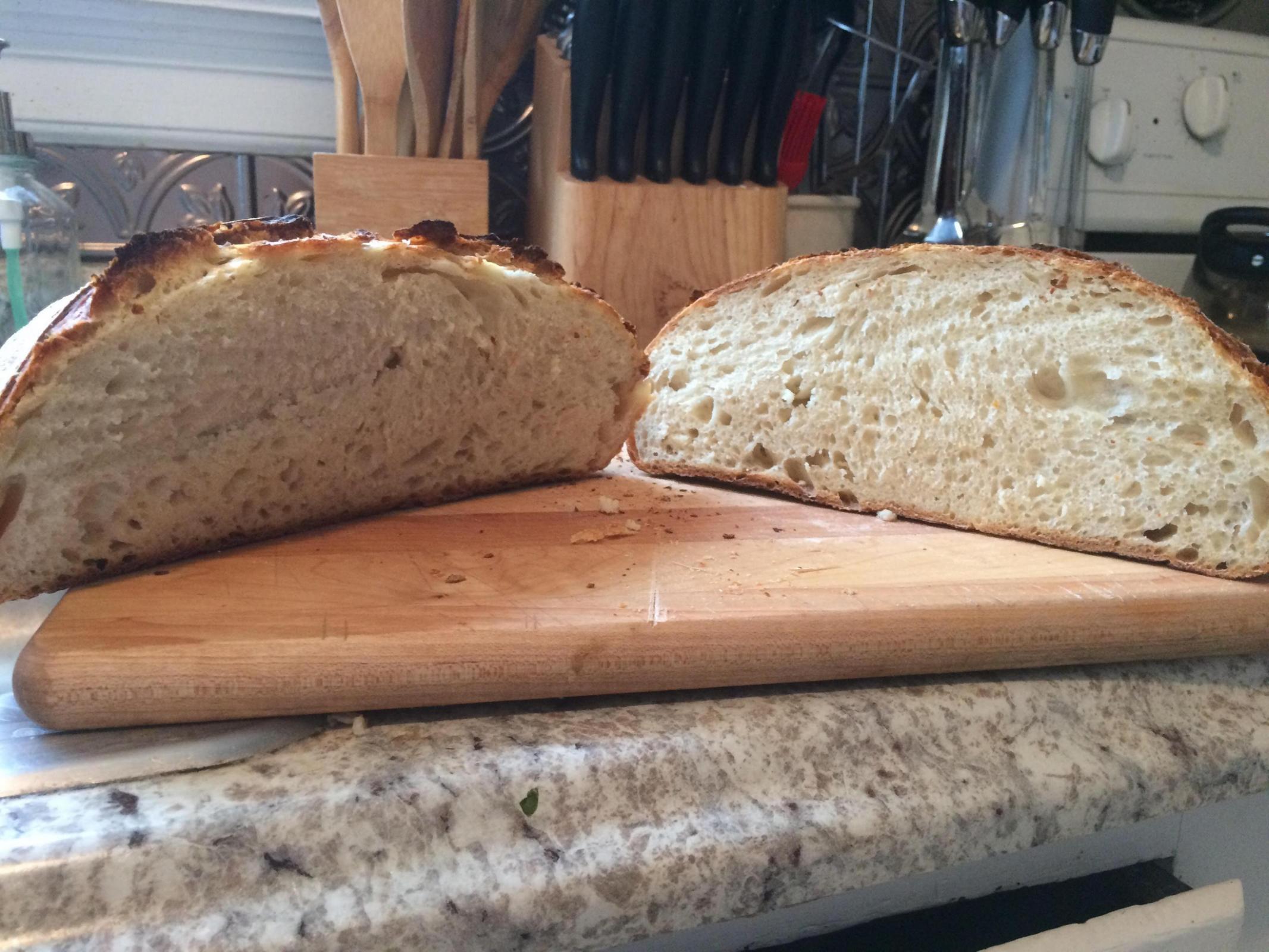 Again, the flavor is good; this loaf in particular is excellent. I just want more air. What's the dealio? Am I using too much flour during my knead? Fermenting / rising too long?
