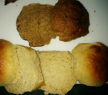 The original roll recipes were for an oat khorasan (kamut) mix for my husband (see original blog here: http://weightloss-slim.fit/node/52425/catching-myself-oat-kamut-rolls-july-7%3C/a%3E%29, and a rye pumpkin roll for me (see original blog here: http://weightloss-slim.fit/node/52515/aug-4-rolls-can-be-baked-while-crutches%3C/a%3E%29.%C2%A0%3C/p%3E%3Cp%3E%C2%A0The main changes on the oat khorasan rolls were to use my oat starter to create the oat levain (instead of the durum starter used the first time), and to change the timing so that the levain and poolish were both mixed at 7:00 a.m., and then were mixed in to the main dough around 12:30 p.m. --- and were in the oven by 3:30 p.m. (talk about quick!).