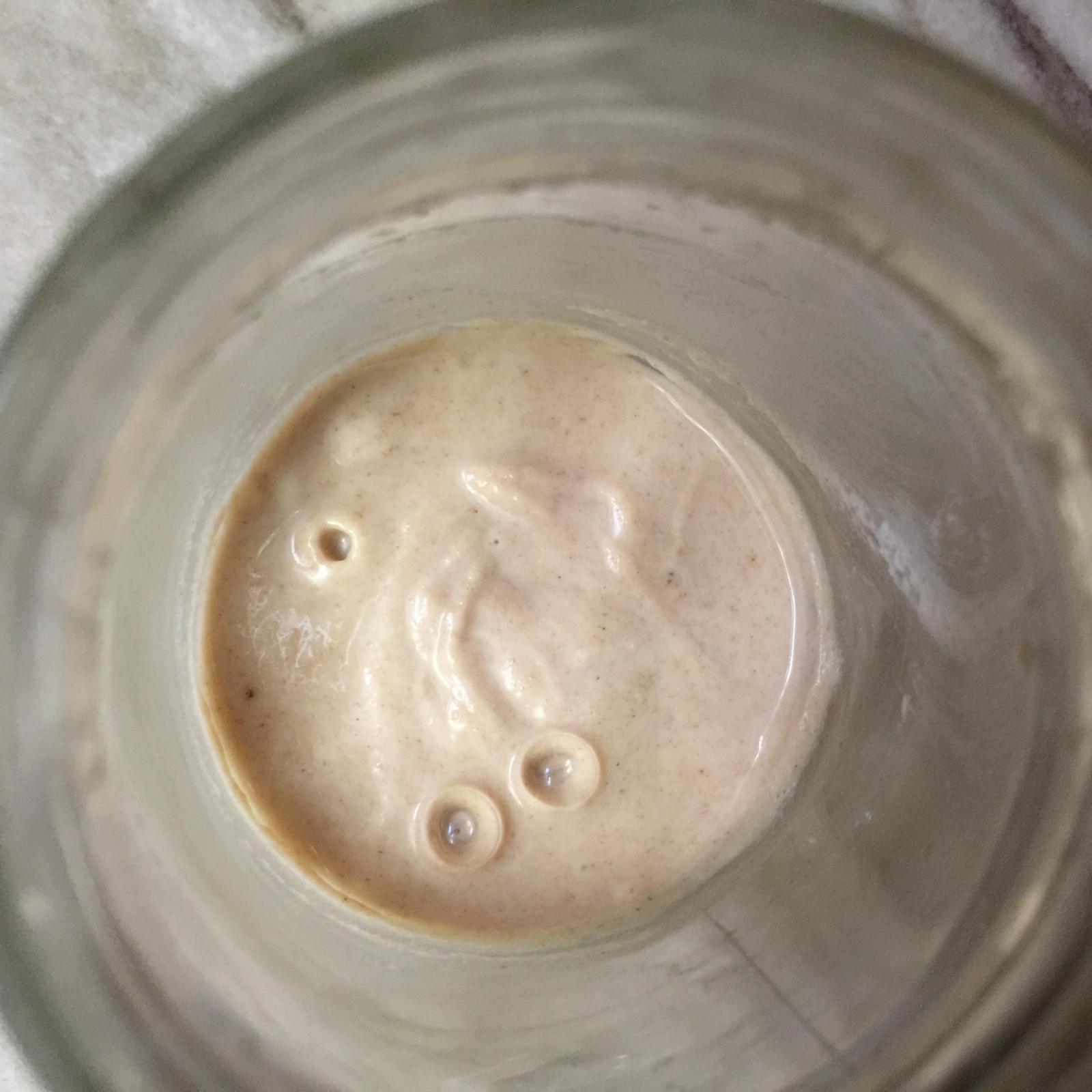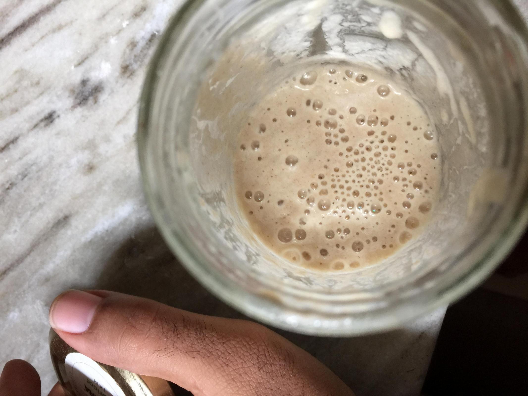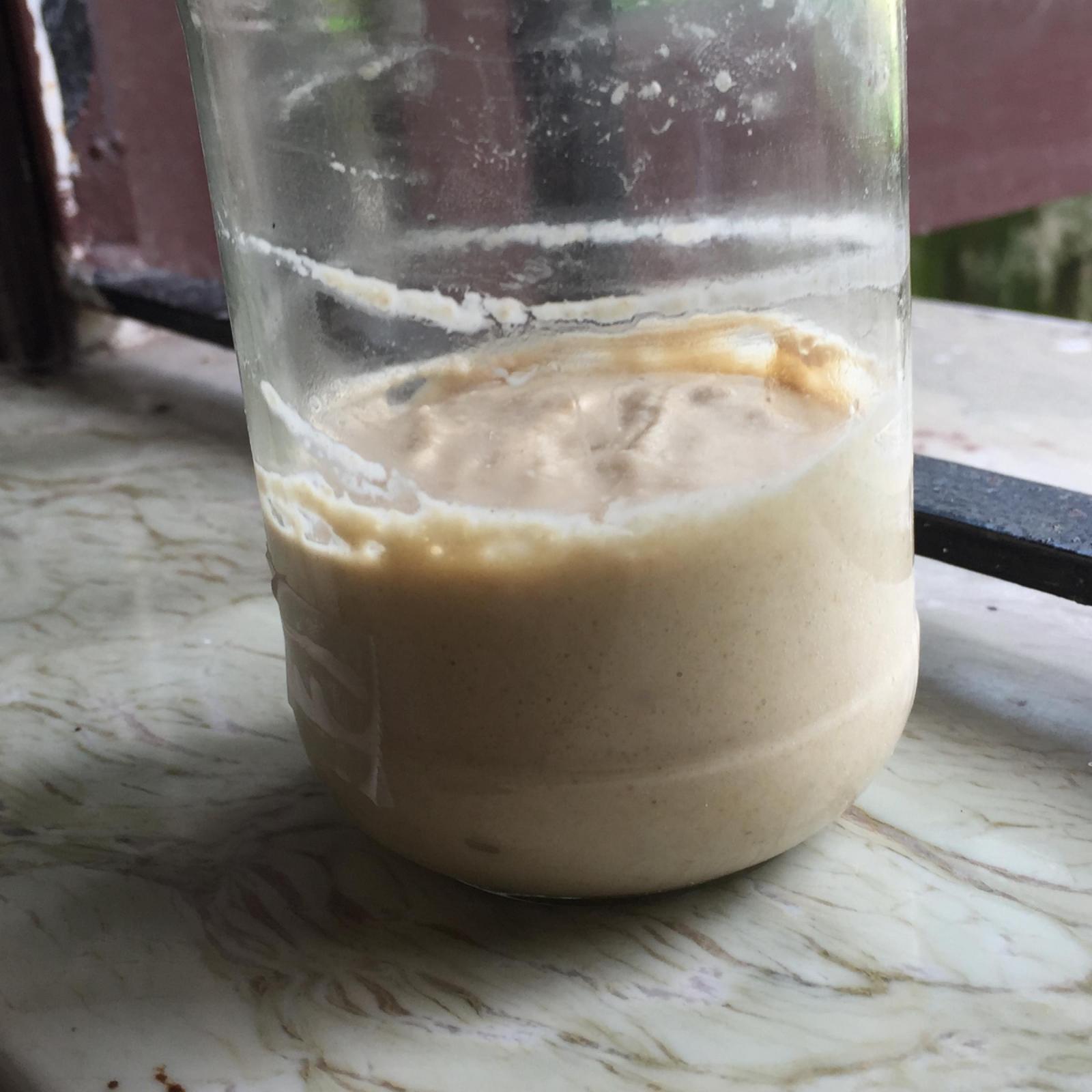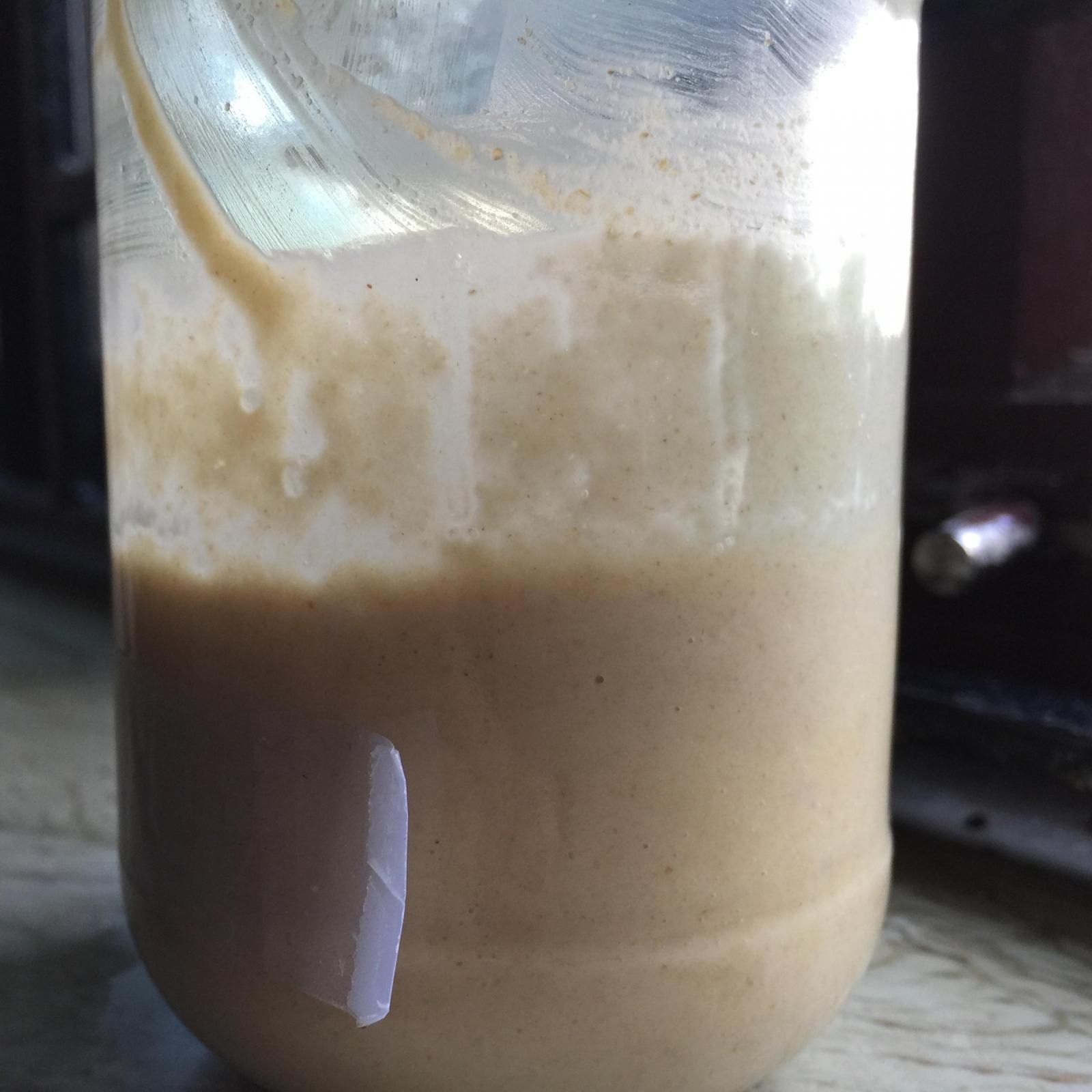 this is a picture of my starter with almost equal amounts multigrain(primarily whole wheat) + filtered water on day 1