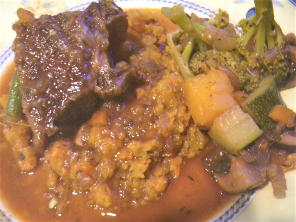 Short Ribs on butternut squash, carrot and sweet potato mash and St Louis Ribs