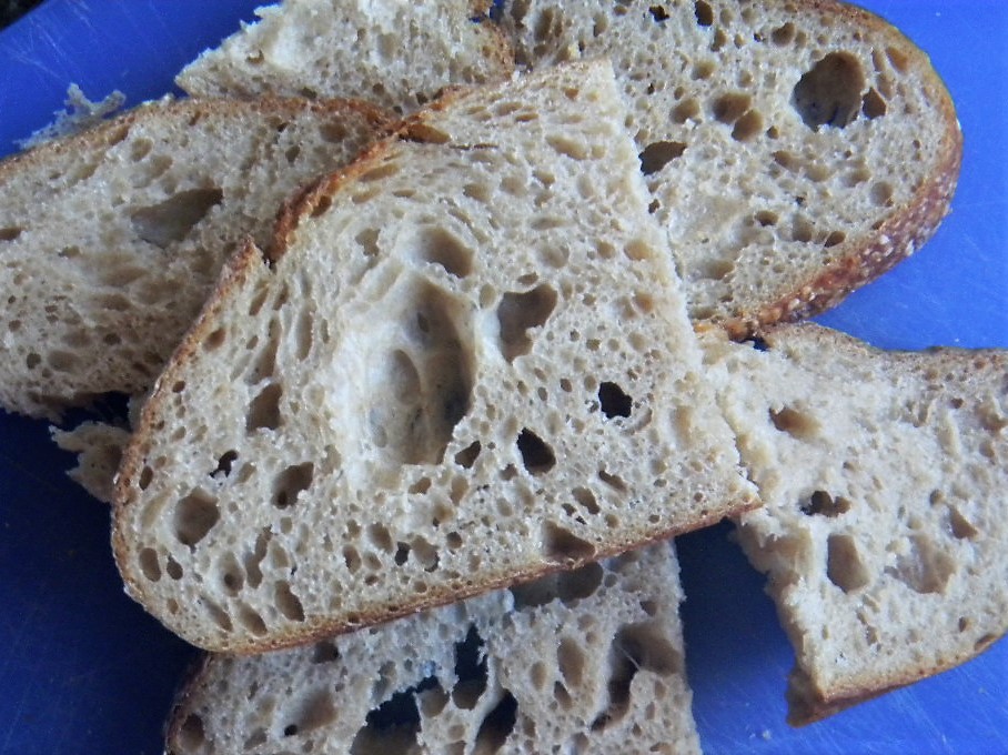 It blistered, Sprang and bloomed well and it is nice looking loaf for sure. We wrapped it in plastic after it cooled and let it sit till the next morning because SD always tastes better the next day and toasted. This is about as good a SFSD you will ever eat and we like it a lot.