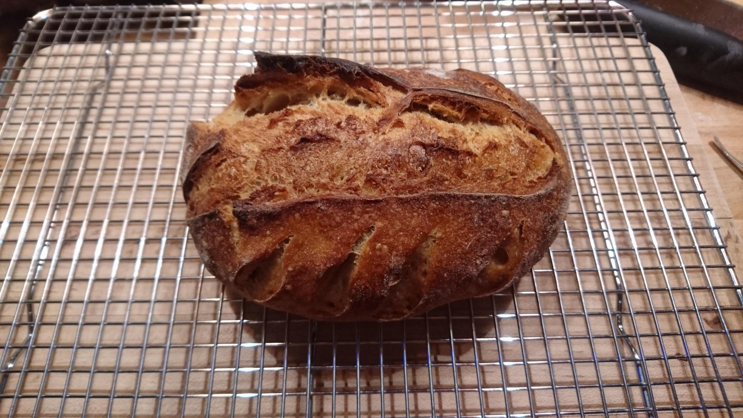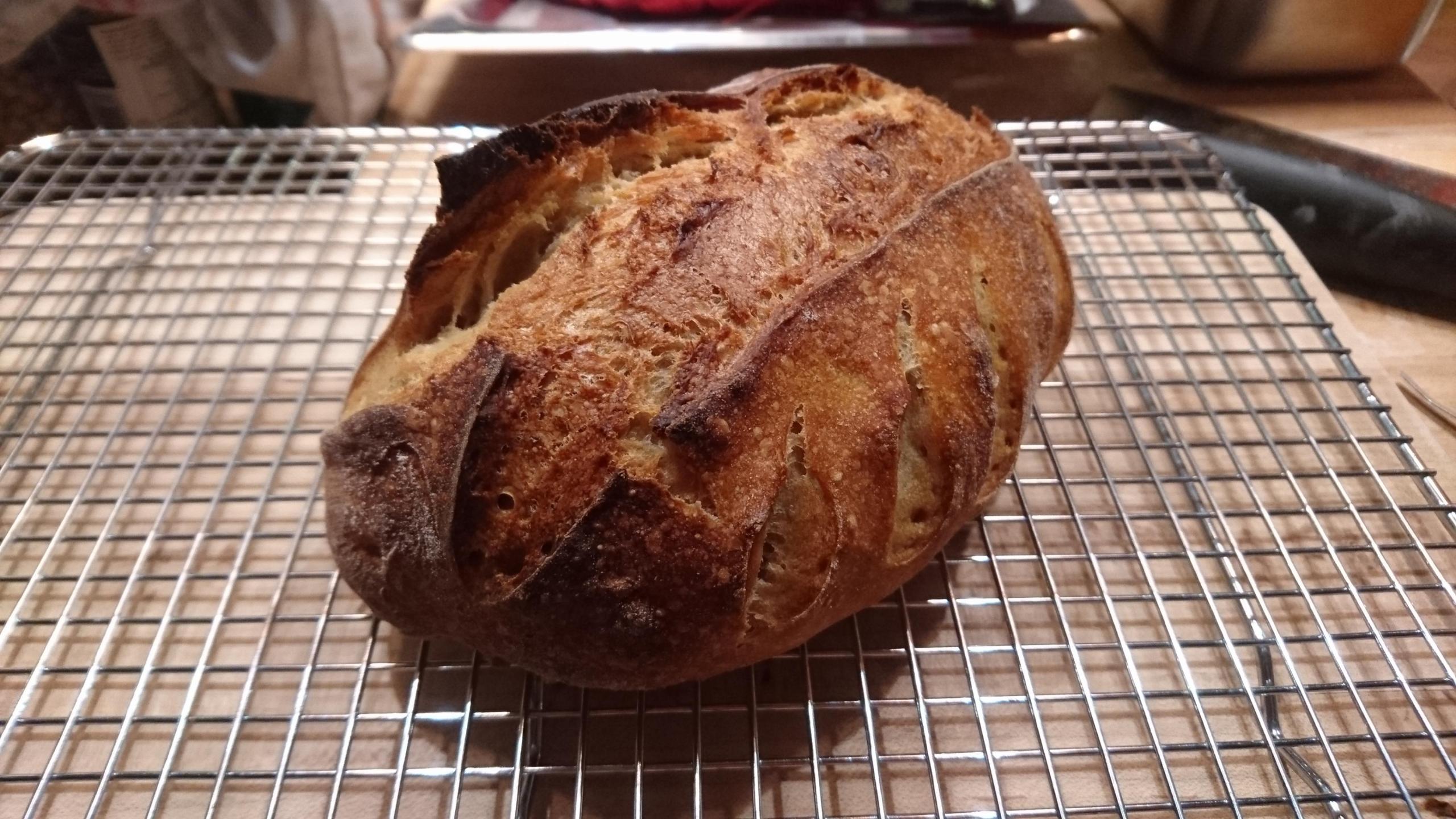 Beautiful loaf! Here's the thing...we use the Artisan bread in one of those gadgets that cut the bread into even, sandwich size pieces. I know that is probably against all Artisan Bread principles of integrity but that's what we do and so I use a sandwich loaf shaped pan. Yesterday I picked up a corrugated loaf pan the same size as the Pyrex one I've been using. So, I will try that next. We did experiment with cooking a pizza yesterday at 425, after a night of self-oven cleaning. He had no reaction. So, now we're thinking it was definitely the scorched surface of the Pyrex setting off fumes. We'll see what happens tomorrow morning with the Artisan bread in the coated, corrugated pan (it is like the King Arthur pullman loaf pan).