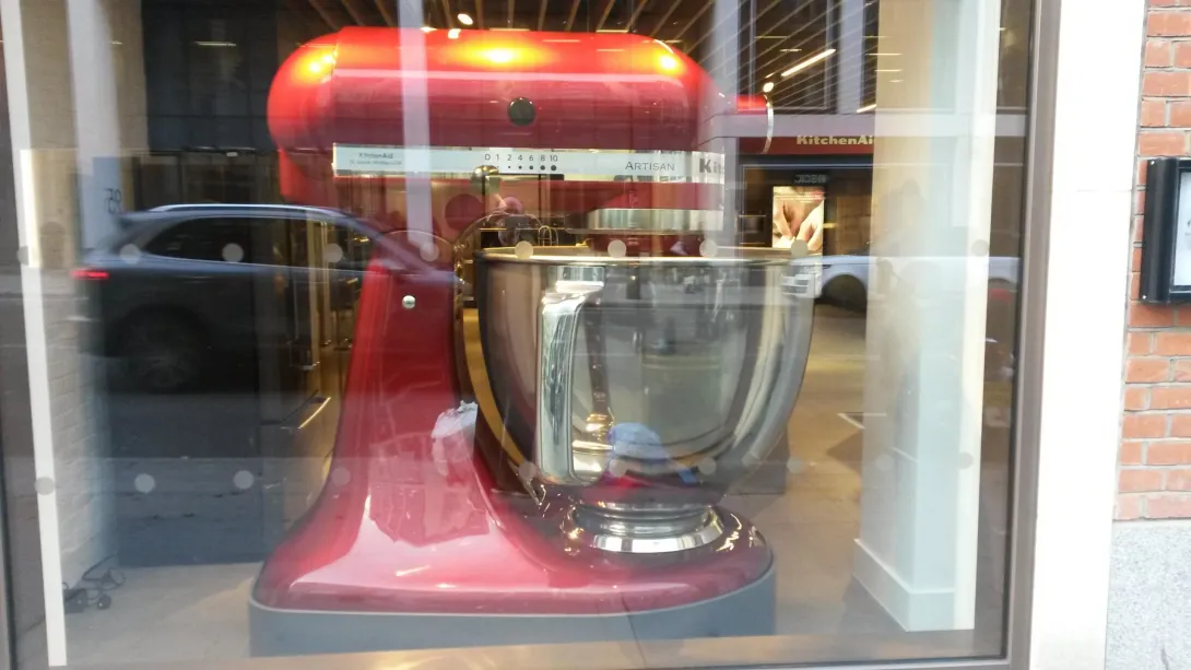 Well I happened to be passing the kitchenaid store in central London today and couldn't help but take a snap of this one in the window. It's at least 7ft tall if not more! I'm inclined to think it's just for display. Shame it's clearly in a shop window as I was thinking of weaving a funny story about buying it.
