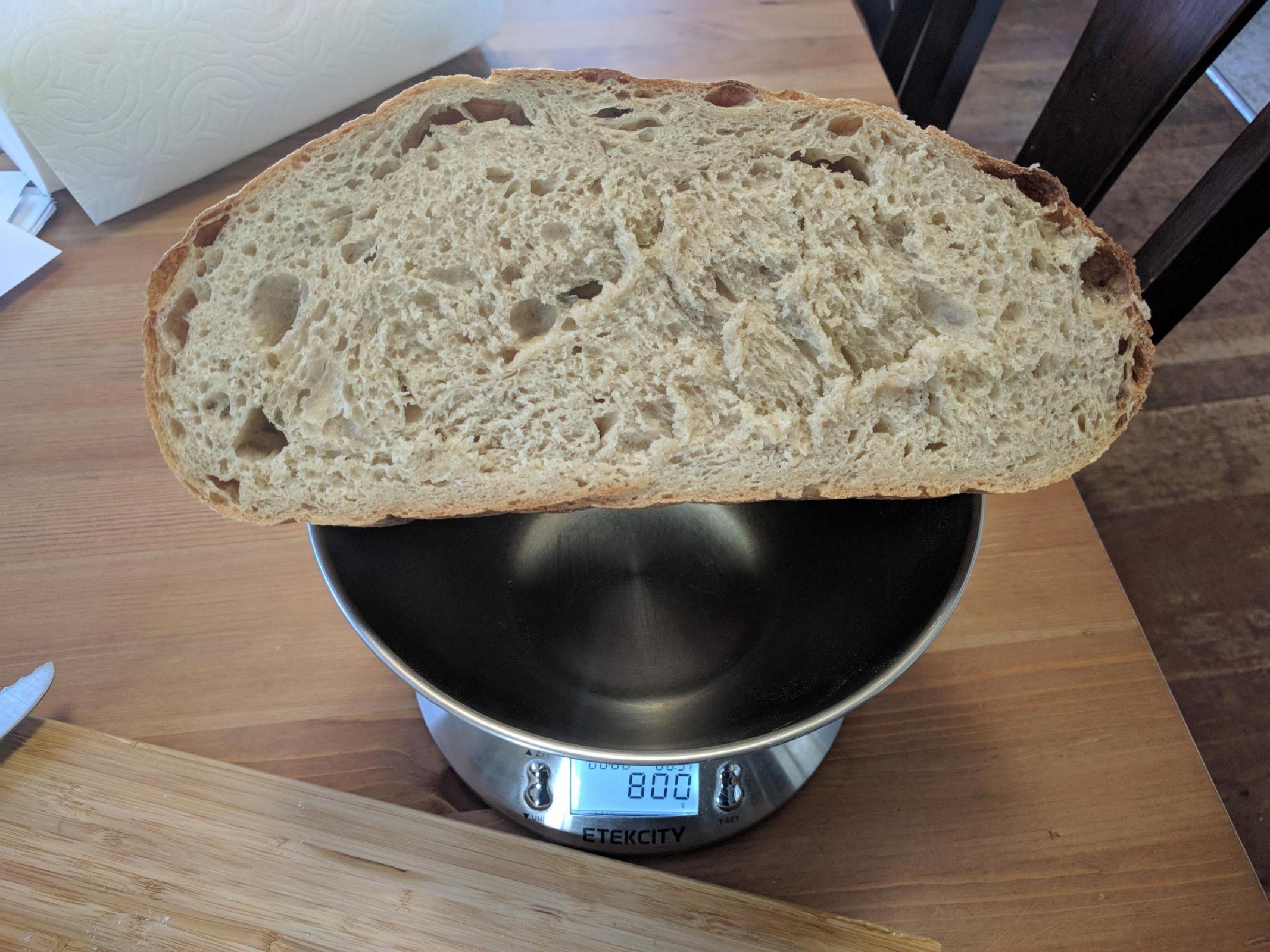 Since getting into this a couple months ago, I've discovered that I really like big loaves of bread. Basically along the lines of FWSY's 1.8 kilo boule (p. 172), i.e. making a 1000 g flour batch of dough and not splitting it into two loaves.