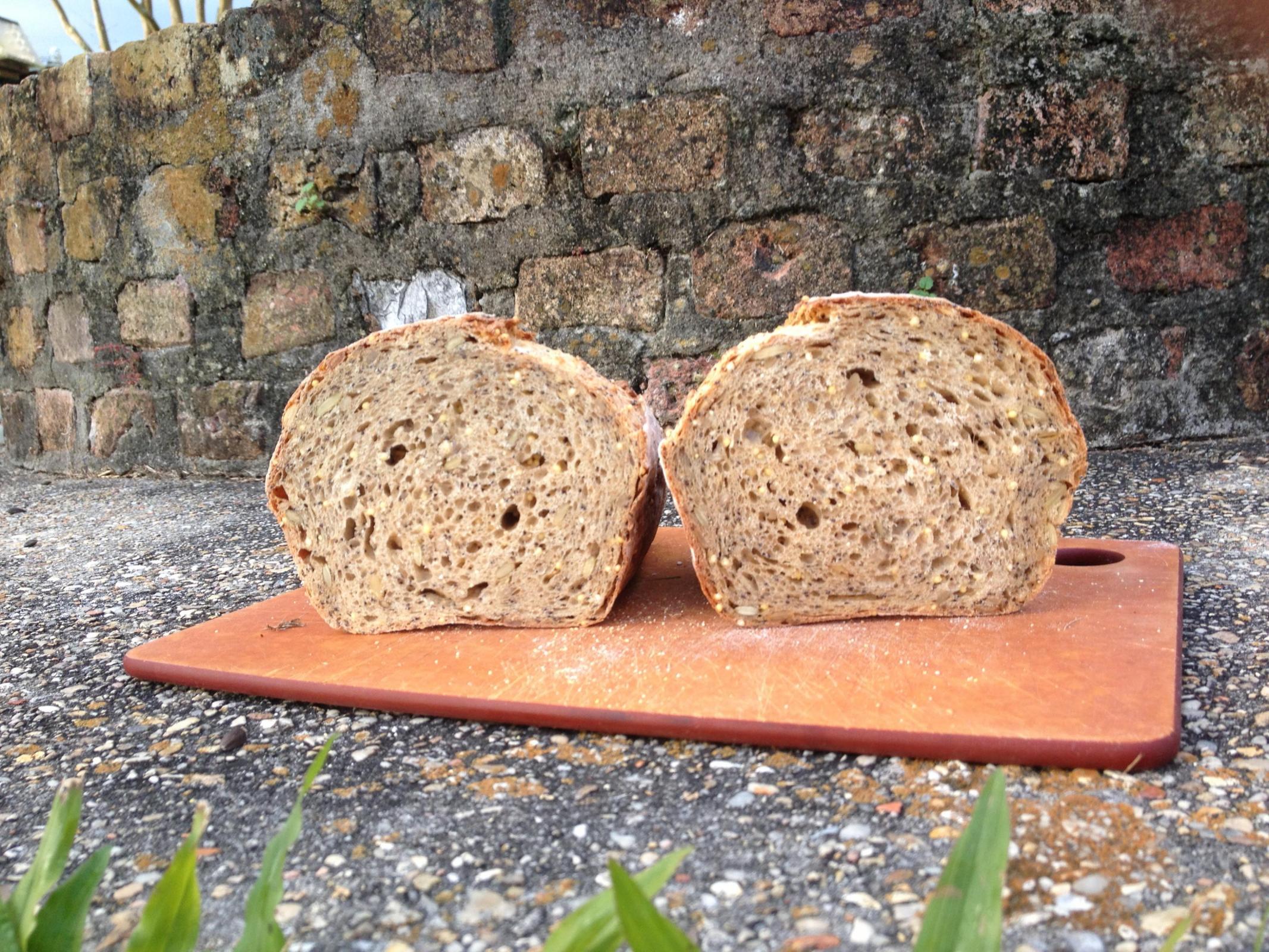 One of my 2 all time favorite breads is Seeduction Bread made by Whole Foods. I am ecstatic to find a recipe that produces an outstanding duplicate. I baked the bread using the original instructions without deviating. The taste and appearance was right on, but I didn't get the openness or airiness that I would like. Next bake I plan to use SAF Gold instead of Red.