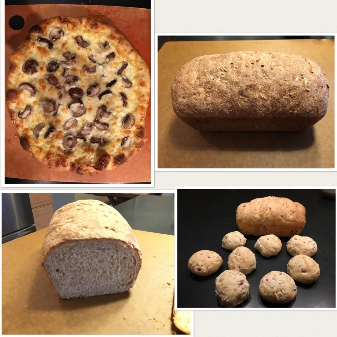 So, I’m brand new to bread baking; it all started couple of months ago when a wet sticky pizza dough defeated me. It was the first time really trying anything with dough and I threw half out. The problem was, the half we ate was amazing! I tend to be obsessive about researching and trying new things so I googled and youtubed for days and tried pizza again. It was even better. Many pizzas later, the dough is now up to fifty percent whole wheat and actually able to be tossed while shaping.
