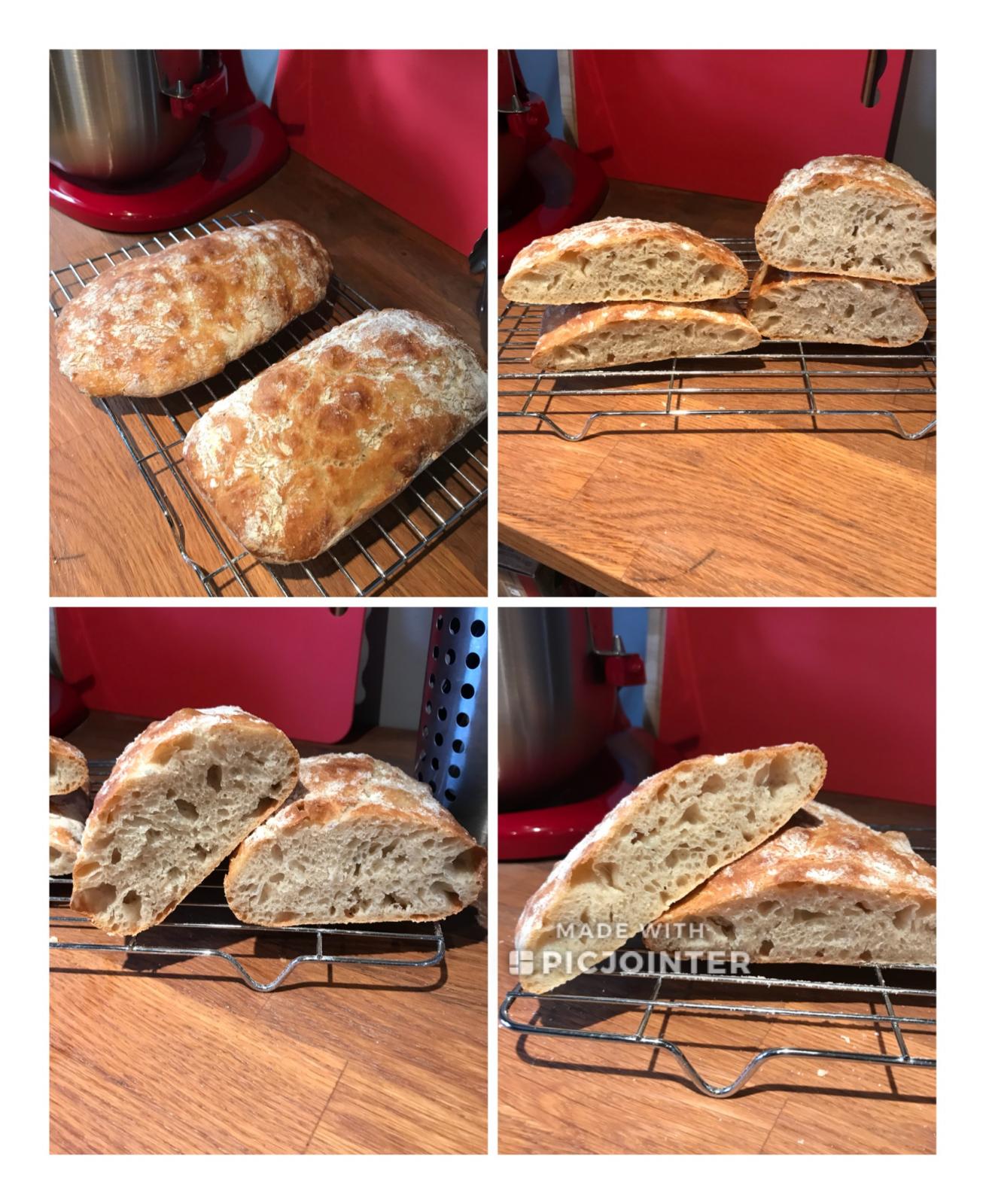 I did not realise how high the hydration was in this recipe, I should of used bakers percentage to check....never again this was a nightmare...I nearly threw it in the bin, can’t tell you how much stretch and folds lost count...but I cooked anyway, half in a tin and half free form. Will be making bruschetta later and the free form one for panini sandwich. Will try again with less hydration next time.