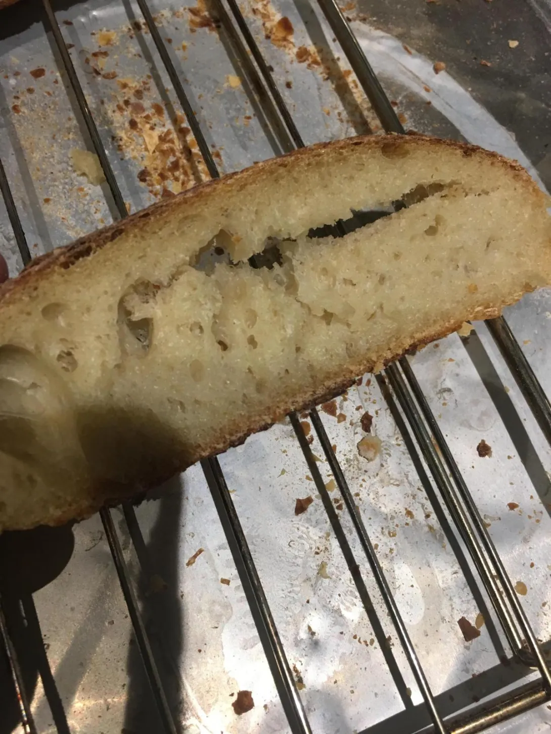 4th) once bread is done and cooled, loaf is chewy and difficult to slice especially the bottom crust?