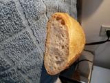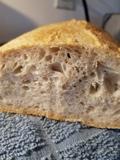 Also my first bulk fermentation at 1 hour was not developed enough. I had half expected this as my starter was a little neglected. In anticipation, I added 2 g IDY along with the starter at the beginning-I added both to the initial warm water to dissolve. 1 hour after mixing the biga and final dough, I did 3 S&F at 30 minute intervals and that did the trick. It still was difficult to shape-almost like a ciabatta. Final proof was about 45 minutes. Unfortunately, my oven only does 375F with brief wild swings between 300F to 450f. It is a challenge to bake in. I did add steam for first 10 minutes.