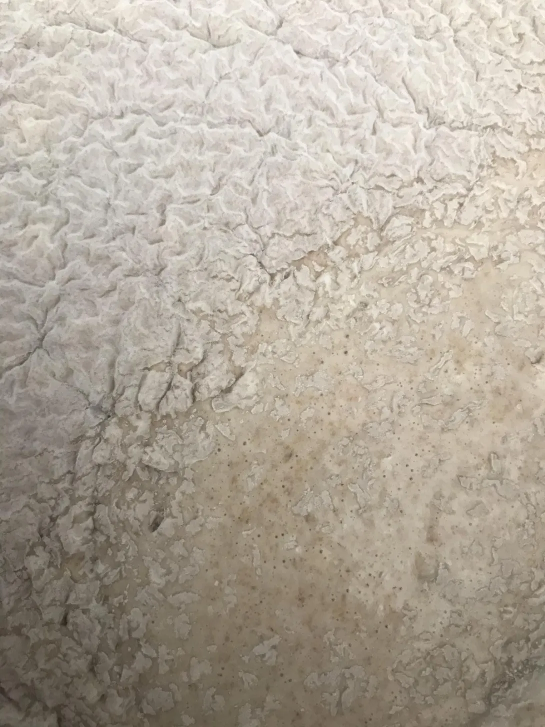 This is my spelt sourdough starter and i woke up to this today.  I stirred in part of it for the sake of contrast and comparison.  Any help would be greatly appreciated.