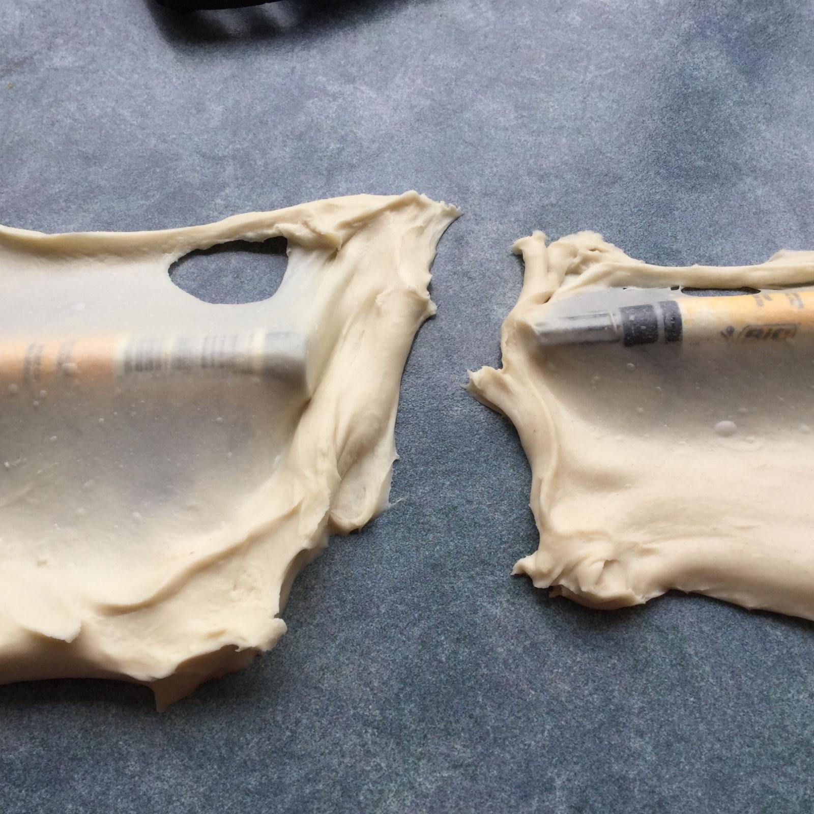 #5 repeat 50stretch and folds. getting quite hard to do. Brand E still smoother, brand C stickier but did manage sort of a window pane which was better in brand c