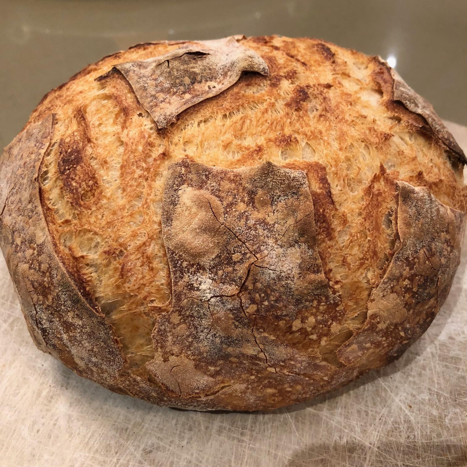 I'm trying to keep the variables constant. It's a basic and kind of boring bread - but I'm just working on technique before I bring the concepts to whole wheat and seeded loaves. I worked on my levain, and could probably have been gentler on the initial folds. I also shouldn't have gone with his higher bake temp - I'd normally bake at 500 an then 450 when uncovered. I'd also add more water. I think my flour needs more water as it felt "tight" when mixing after having added the levain and it was as if  I tared the  dough a bit even though it was early.. I think I got a lot of gluten developed overnight.