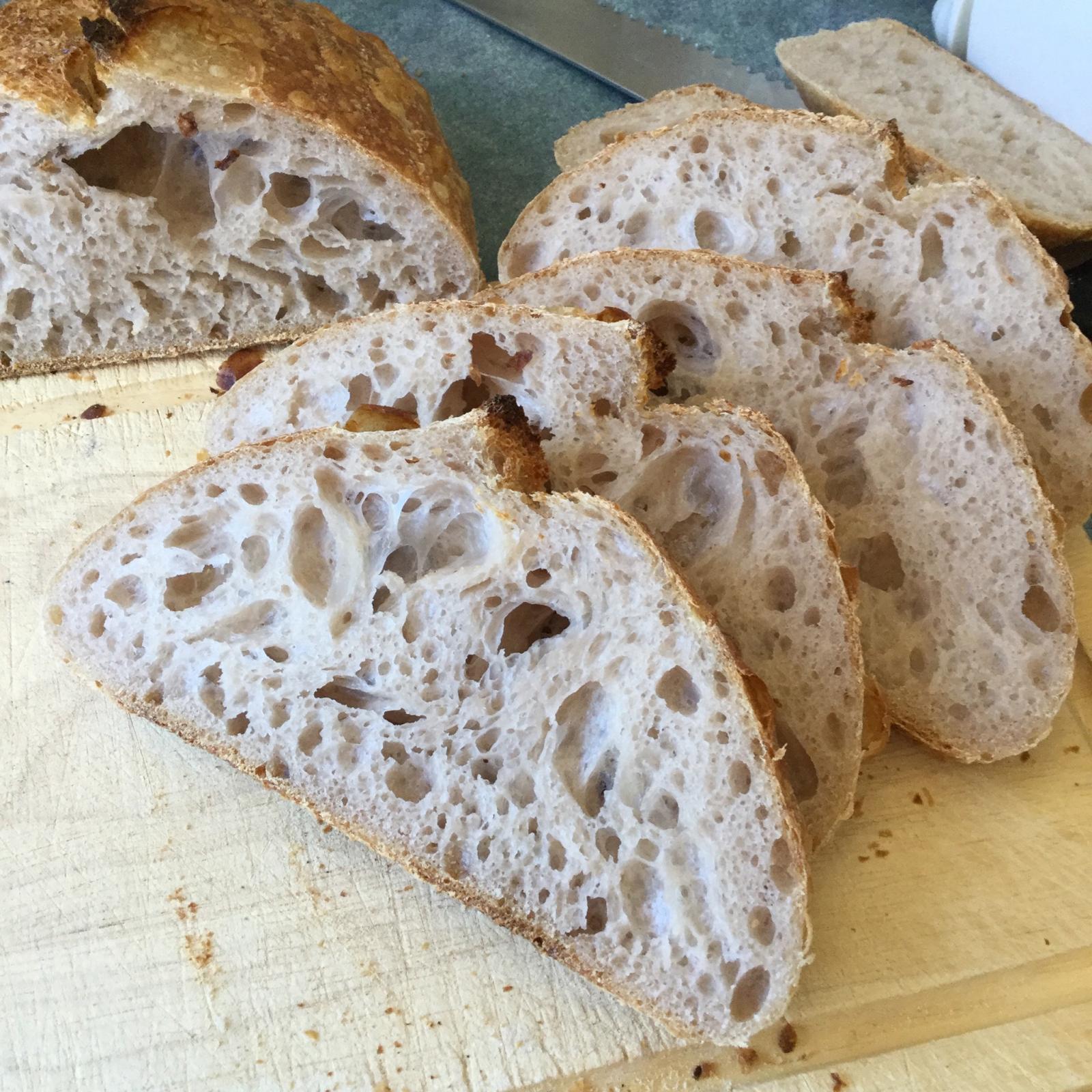 Lovely loaves and wonderful holes! Did you have your DO preheating as well in the 7 am oven? I use my apple yeast water pretty often in my bakes too. It is about 5 yrs old or more. Have you ever saved one and kept it going or do you just start new with different fruits? Look forward to more of your bakes and great reports. c