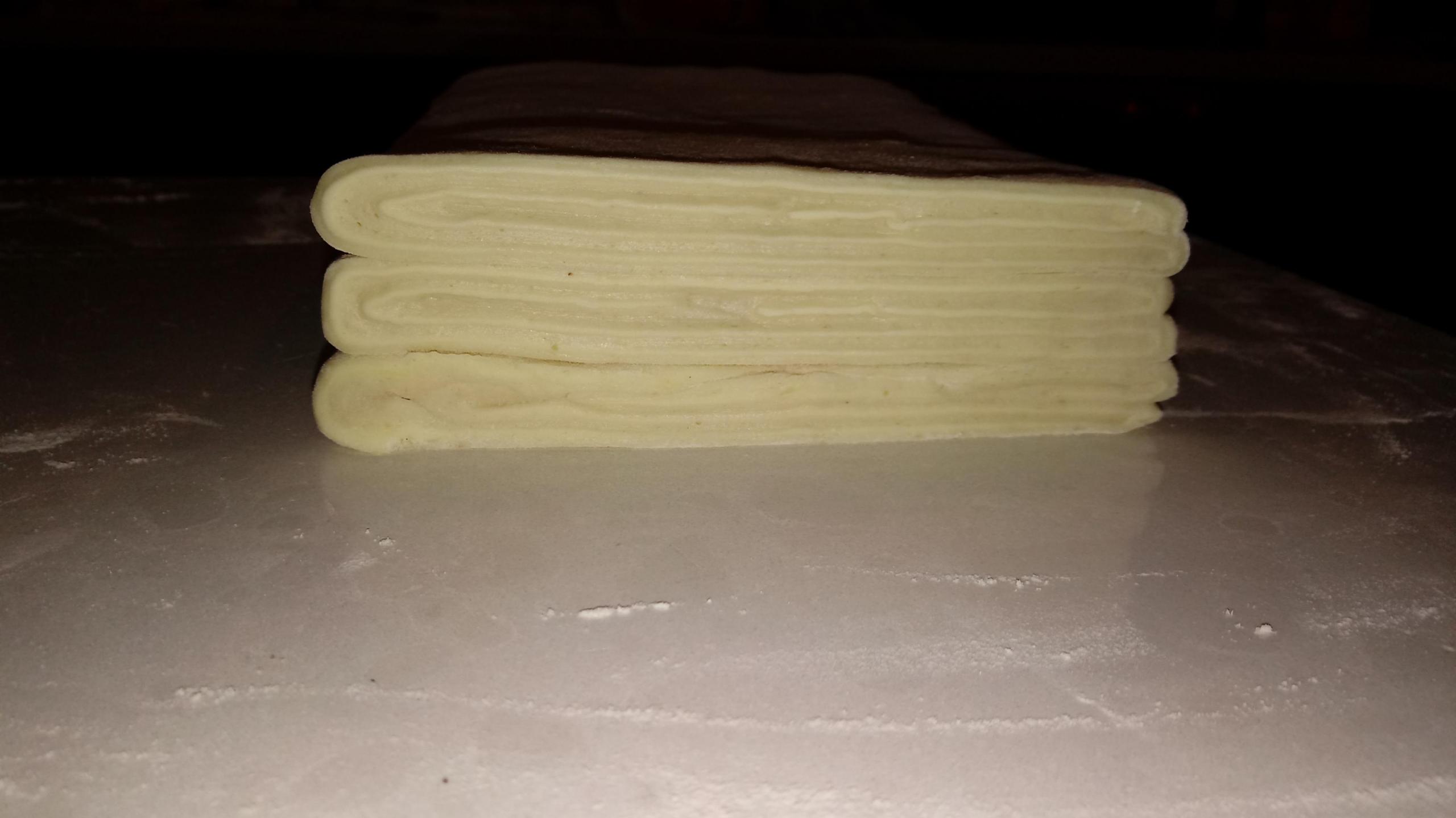 Thanks dbm ! I recall just several months ago getting with butter and trying,to laminate these dang things using your (and my) favorite butter Kerrygold. I've since nix'd the kerrygold in favor of presidente and will keep the kerrygold for spreading. So,with that said just saying for lamination, Presidente is really great - not too soft, not to hard and distributes really nice - check out this double fold and nitice how even the butter layer is (ignore the off cut fillers)