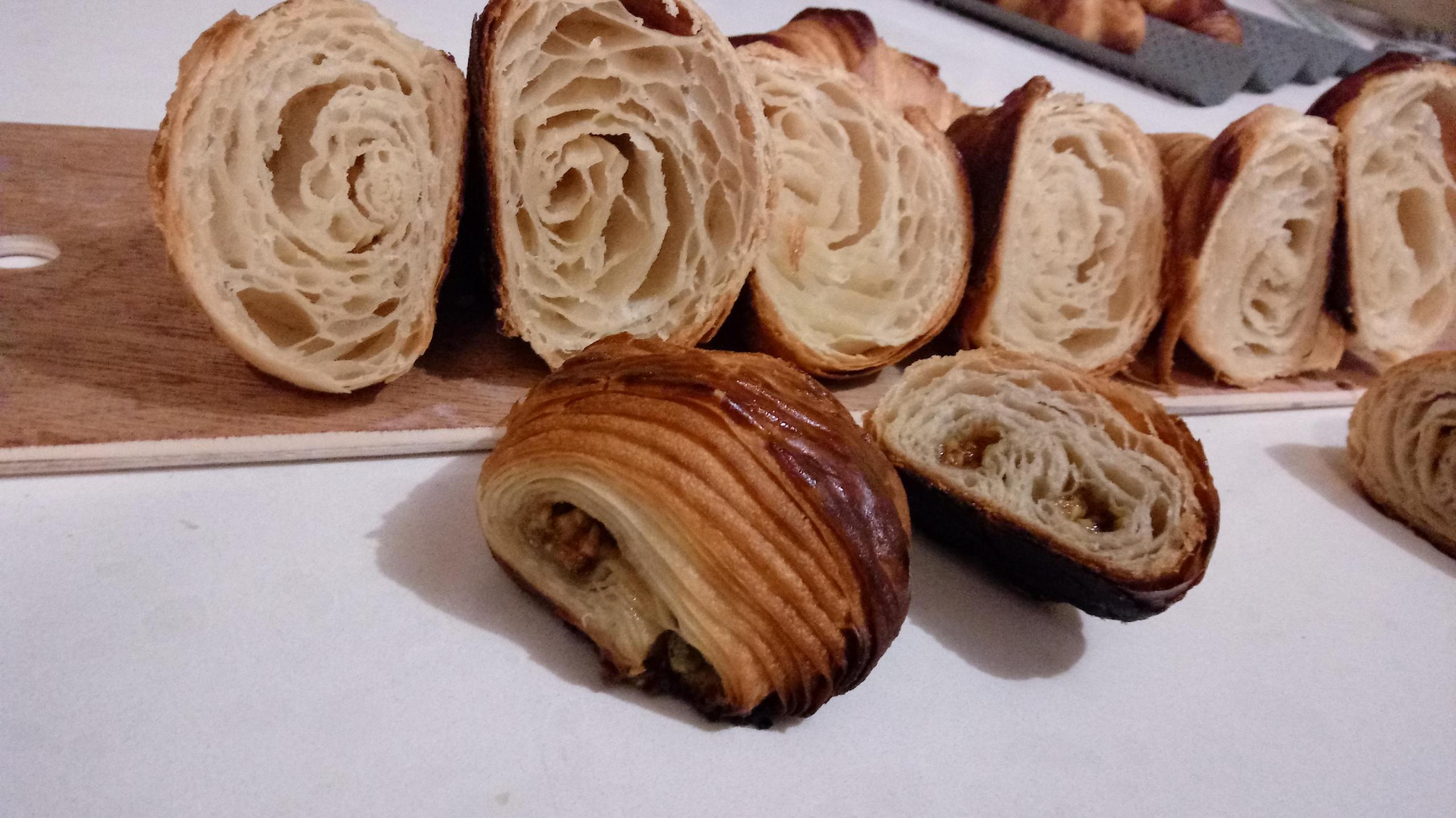 I might add cutting through these have an immediate impression something was different. Knife just sort of fell through. Here's some pain aux chocolate