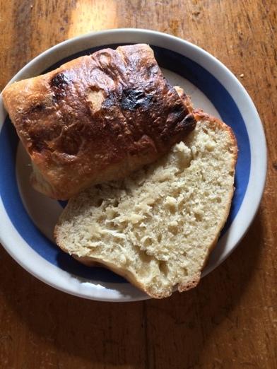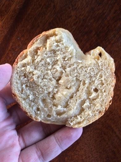 They were very fragrant coming out of the pot with a tangy smell and a touch of smoke and an extra buttery aroma. The crust was very crispy with a delicate feel to it and the crumb was soft with a very slight chew. The taste was complex; buttery, slightly sugary sweet with the barest hint of tang. Very good on its own or with fillings, so far we only had cheese in the house so that's what we used. Out of excitement we cut them while still hot so the crumb was still a bit wet and has not set-up completely. My parents really loved them because they don't have to fight them with their jaws but still has that lovely crisp crust like the last time.