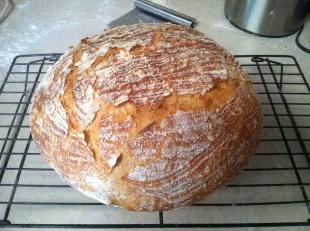 its a very wet dough. I bake it in a cast iron dutch oven which really helps it hold its shape and not spread out. Depending on the weather conditions it can be necessary to add a little more flour.