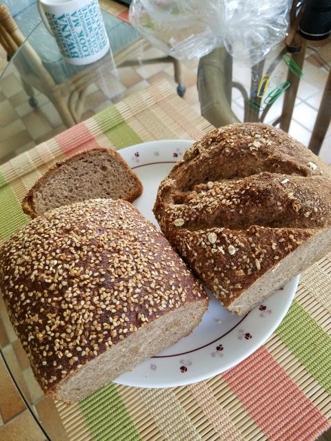 The loaf on the right was the preferment. I did slash it as it was ripping.