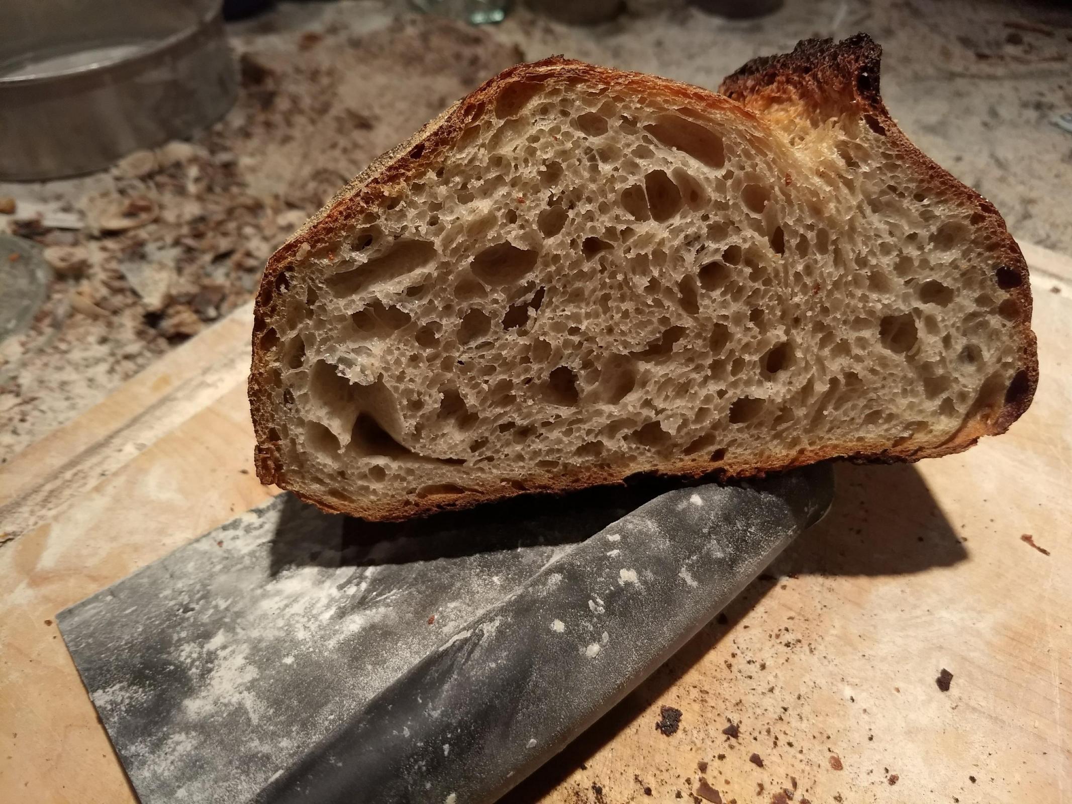 I usually only bake two types of bread,  underproofed and overproofed.  That is definitely not overproofed .   Great looking loaf.