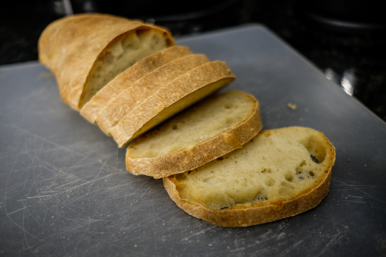 So this past weekend, I decided to experiment a bit and make up my own recipe. I've been baking standard baguettes and sourdough for about 6 months now and wanted to try something different. I've always wanted to try ciabatta but I wasn't trying for that. Here is the recipe:
