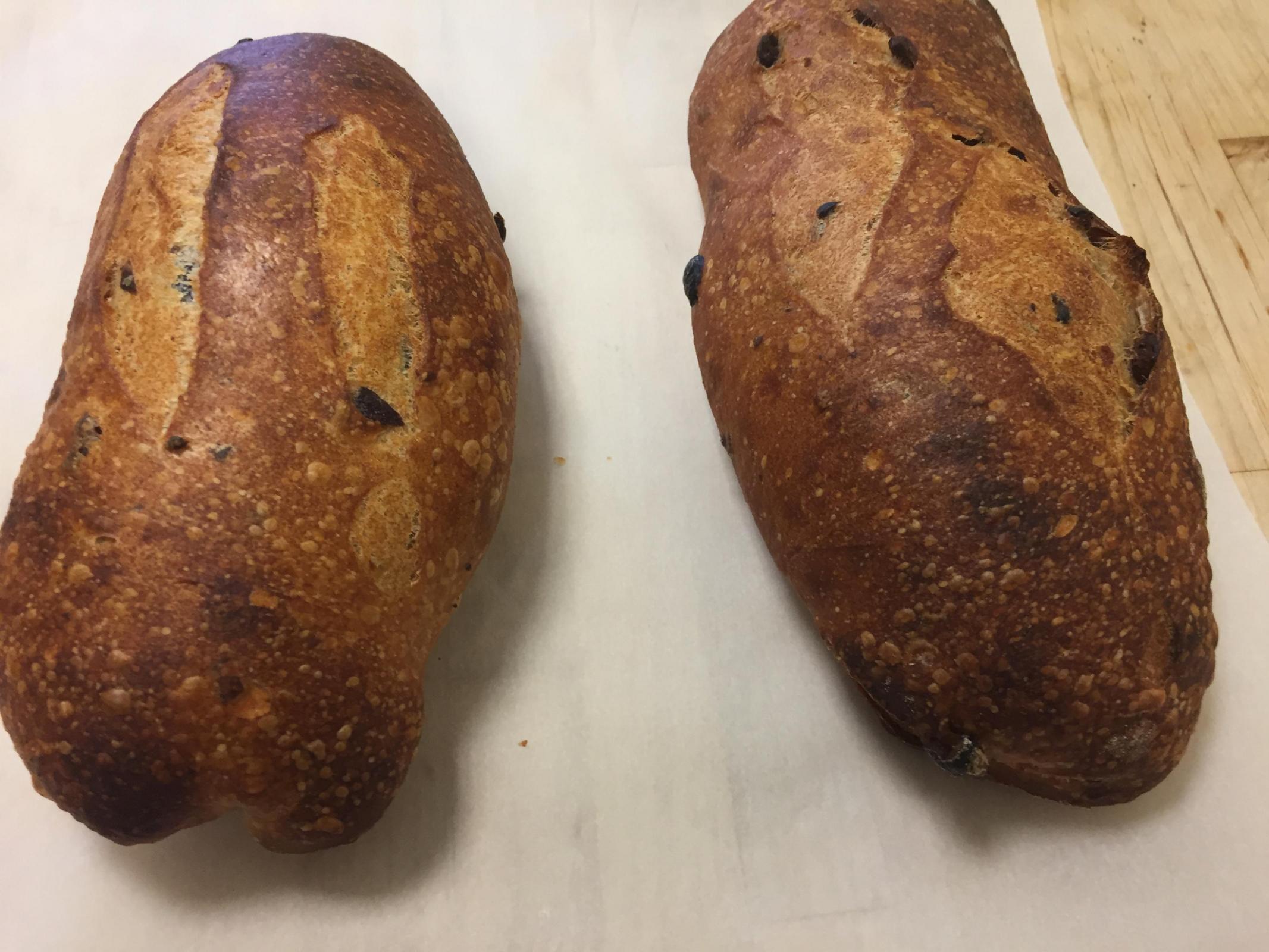 I decided to make my ordinary sourdough bread, only with the addition of kalamata olives. Instead of doing an overnight levain, mixing in the morning, and baking it off in the evening, I'd try starting the day before, retarding the bulk ferment overnight, and then dividing, shaping, and proofing in the morning for a mid-day bake.