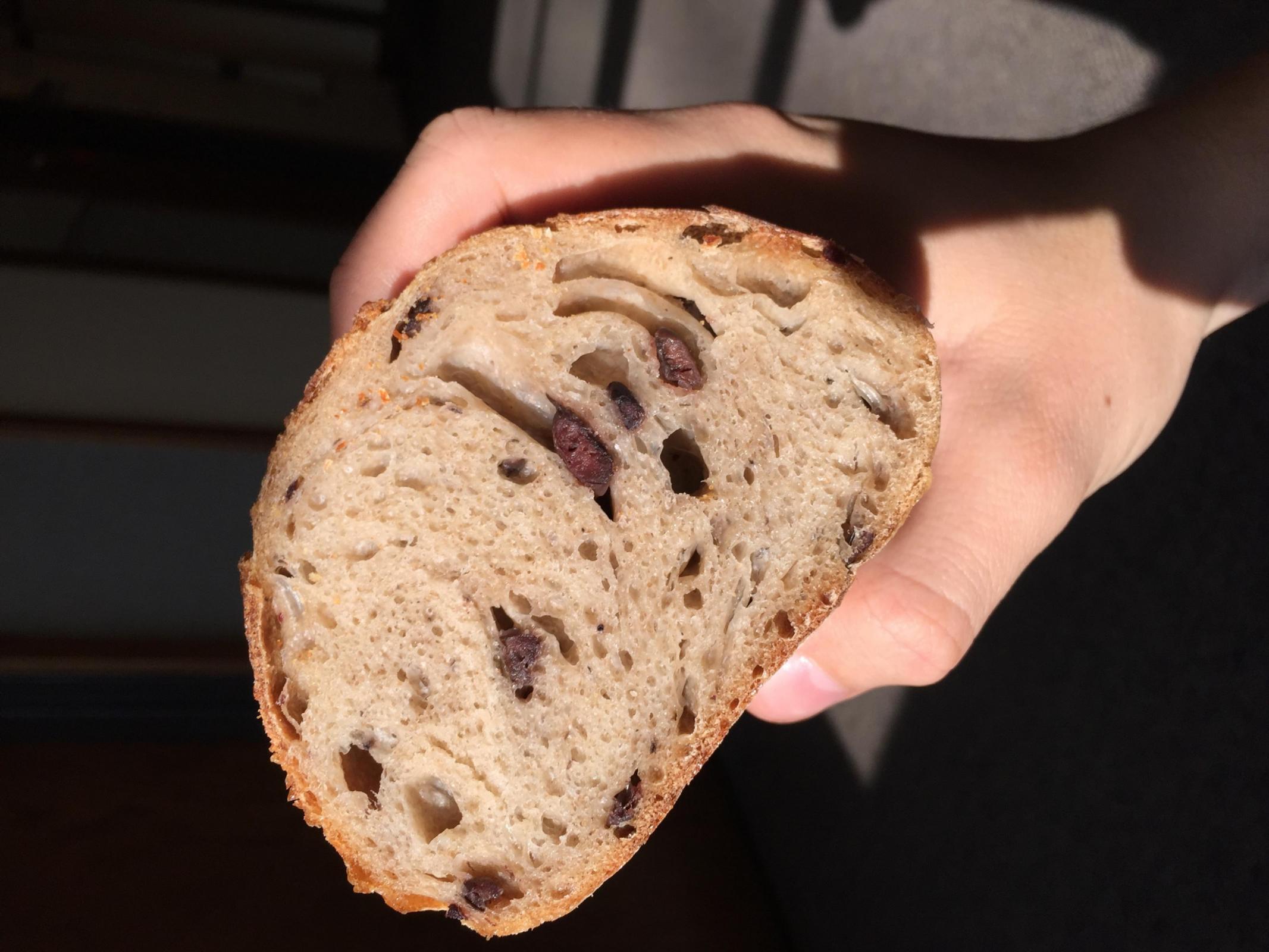 I decided I'd like to try tweaking around my timing to see if I can possibly fit in baking easier to my schedule. I'd bought a jar of olives to snack on, and saw my starter as I was putting it into my fridge -- an idea formed in my mind.