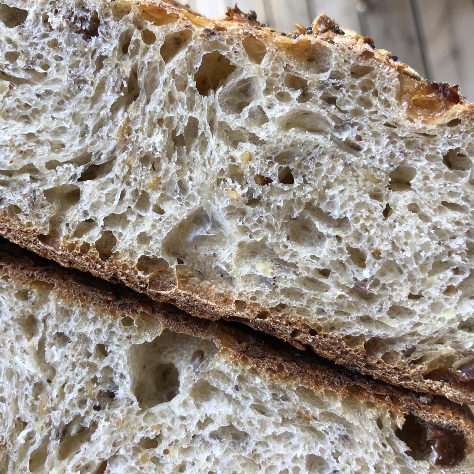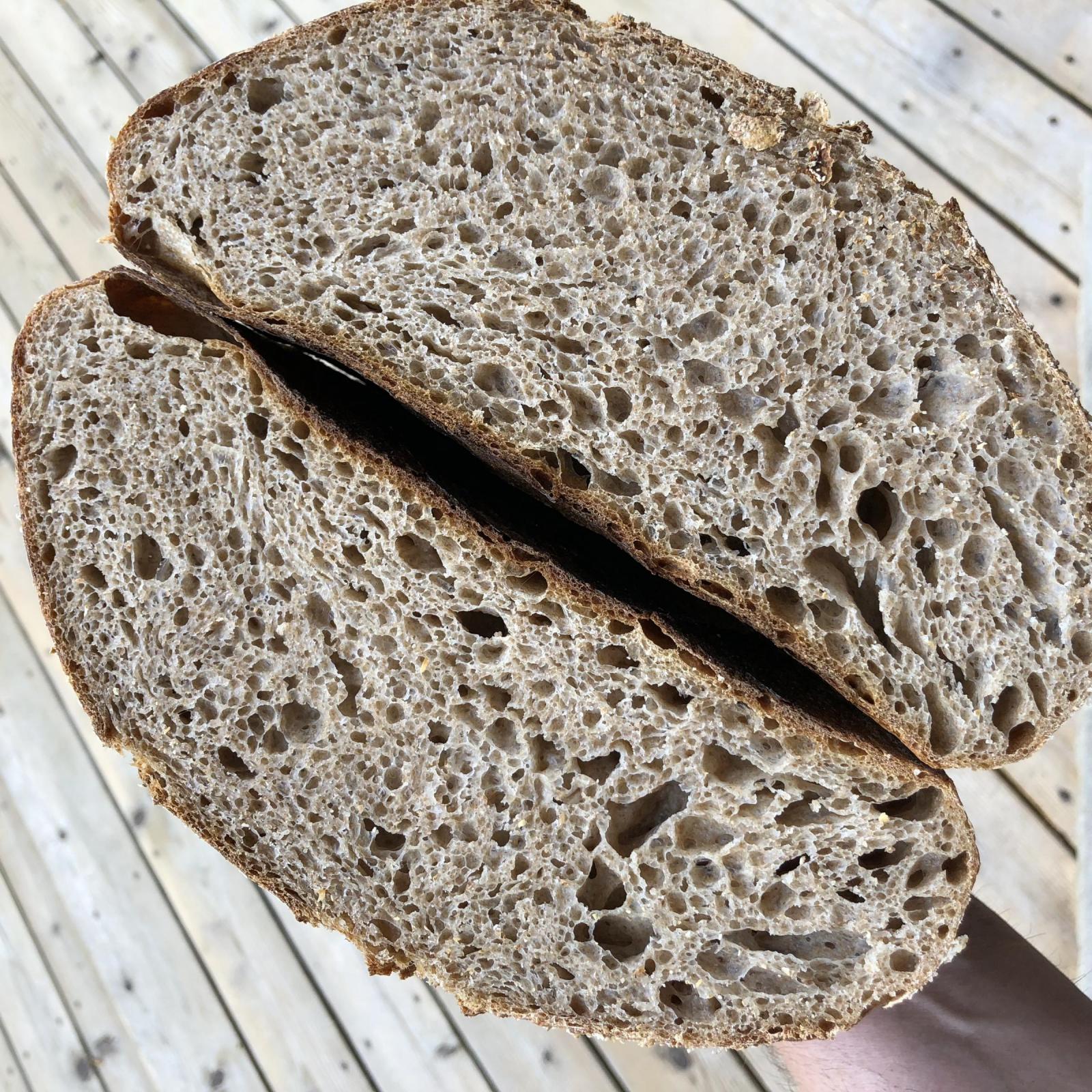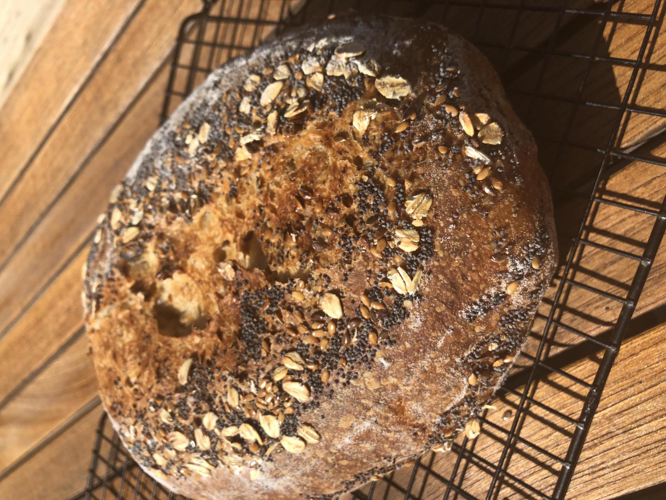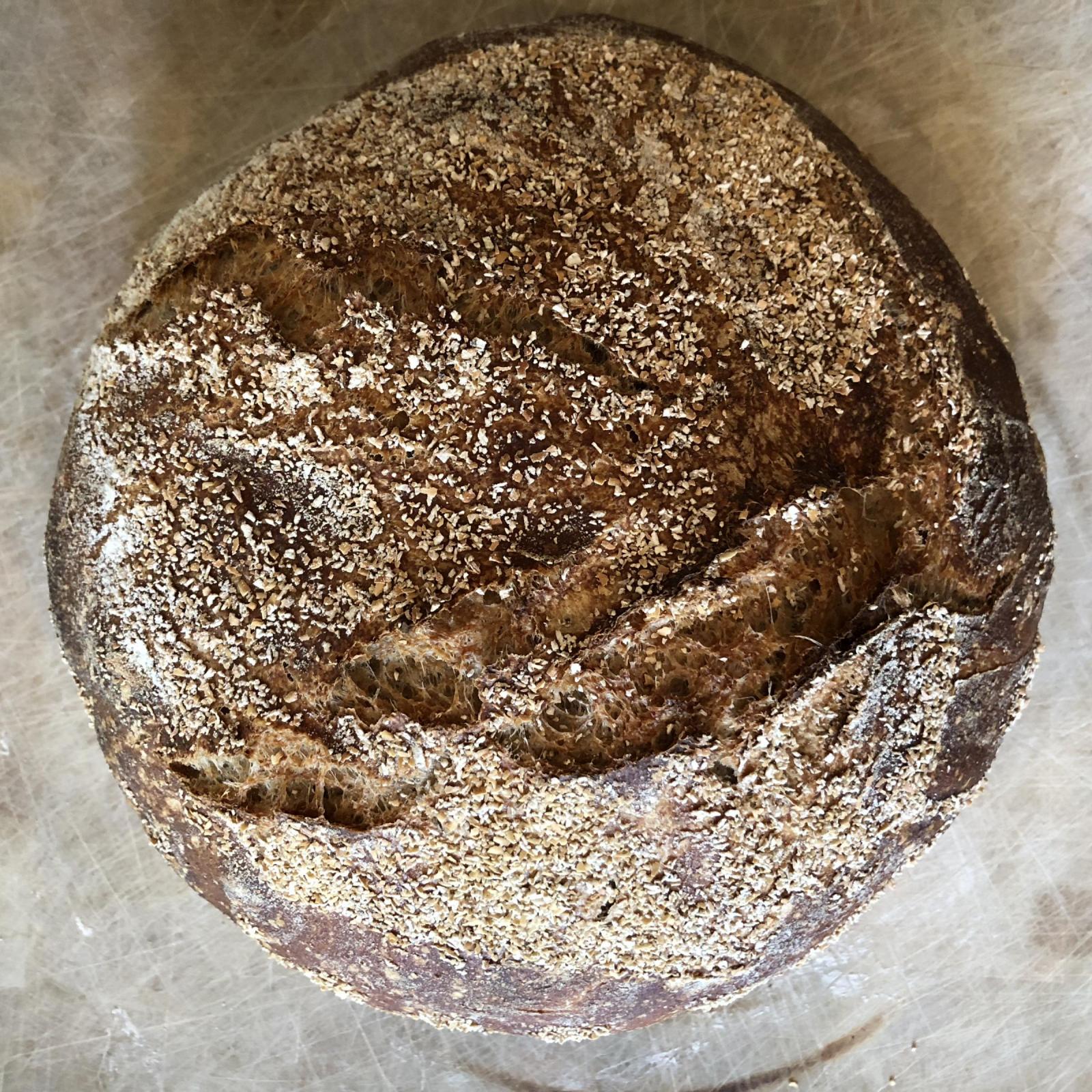 First the Tartine - standard recipe crusted with oat bran..