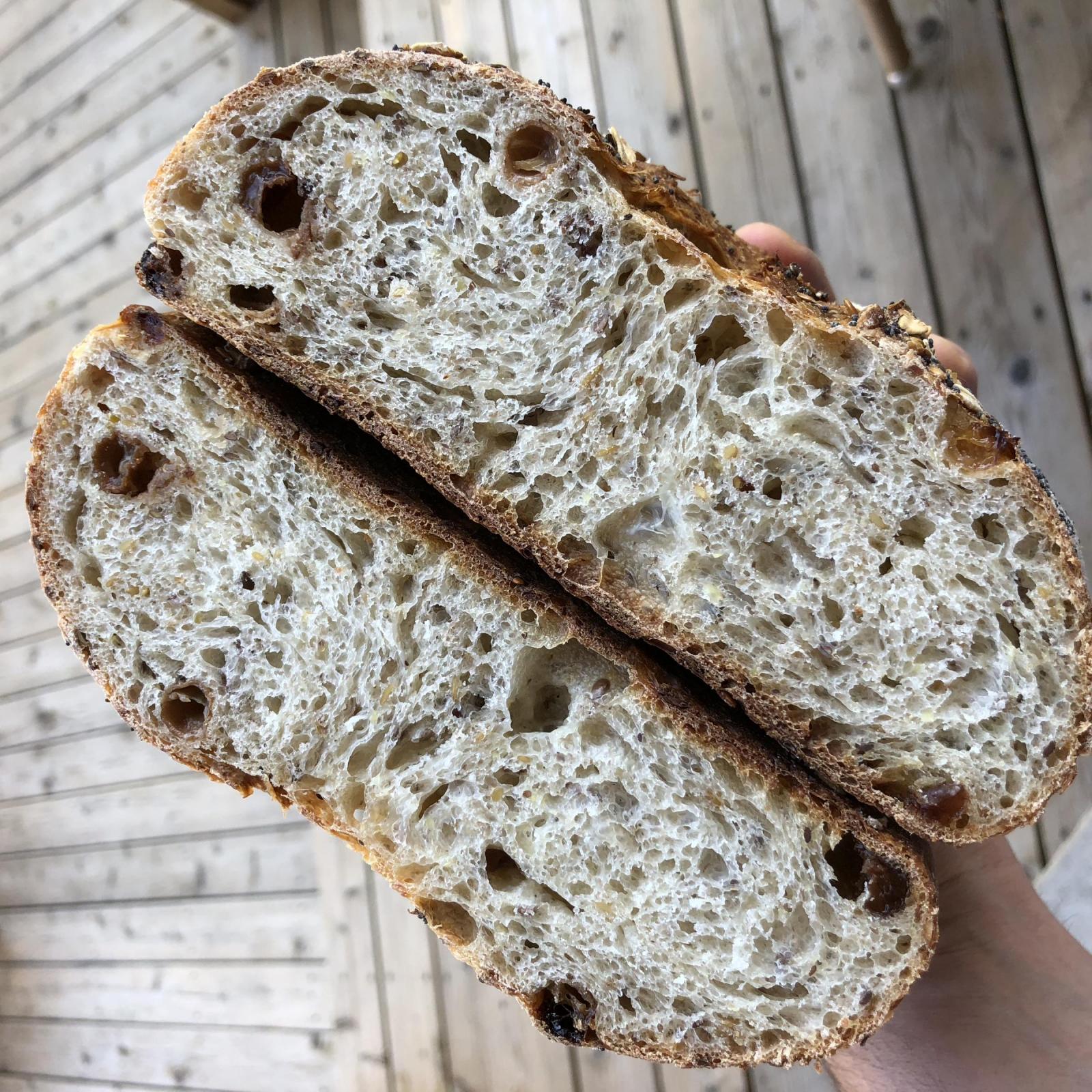 The taste was good but more subtle compared to the original. I think I'll double up the raisin water, the honey and the raisins.. and see how that works. I also think I might add a bit more oil.