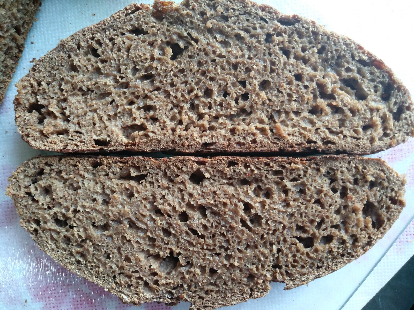 Look how dark the crust and crumb are compared to white bread.  This crumb looks at least as good as the last loaf and maybe a bit loftier?  It has to taste great too.  Well done.  That pasta is killer too!  Now Lucy wants some!